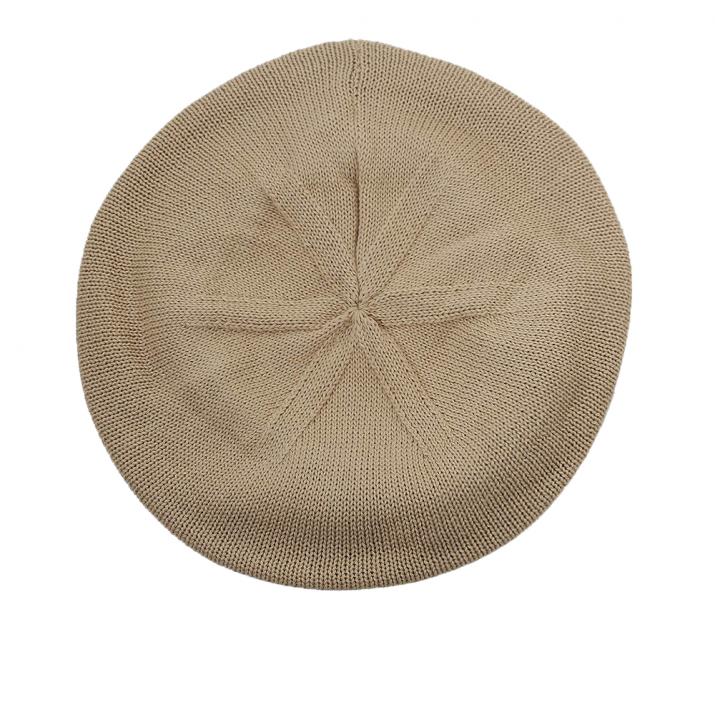 コットン素材100%のシンプルなベレー帽です。伸縮性のあるコットン編みで、通気性にも優れ、オールシーズンかぶることが出来る定番のデザイン。くたっとした質感で、ゆったりとしたかぶり心地が魅力です。丸みを最大限に生かしてコロンと被るのもよし、少しボーイッシュに被るのもよし。飽きのこないシンプルさで、女性はもちろん、男性にもオススメ。