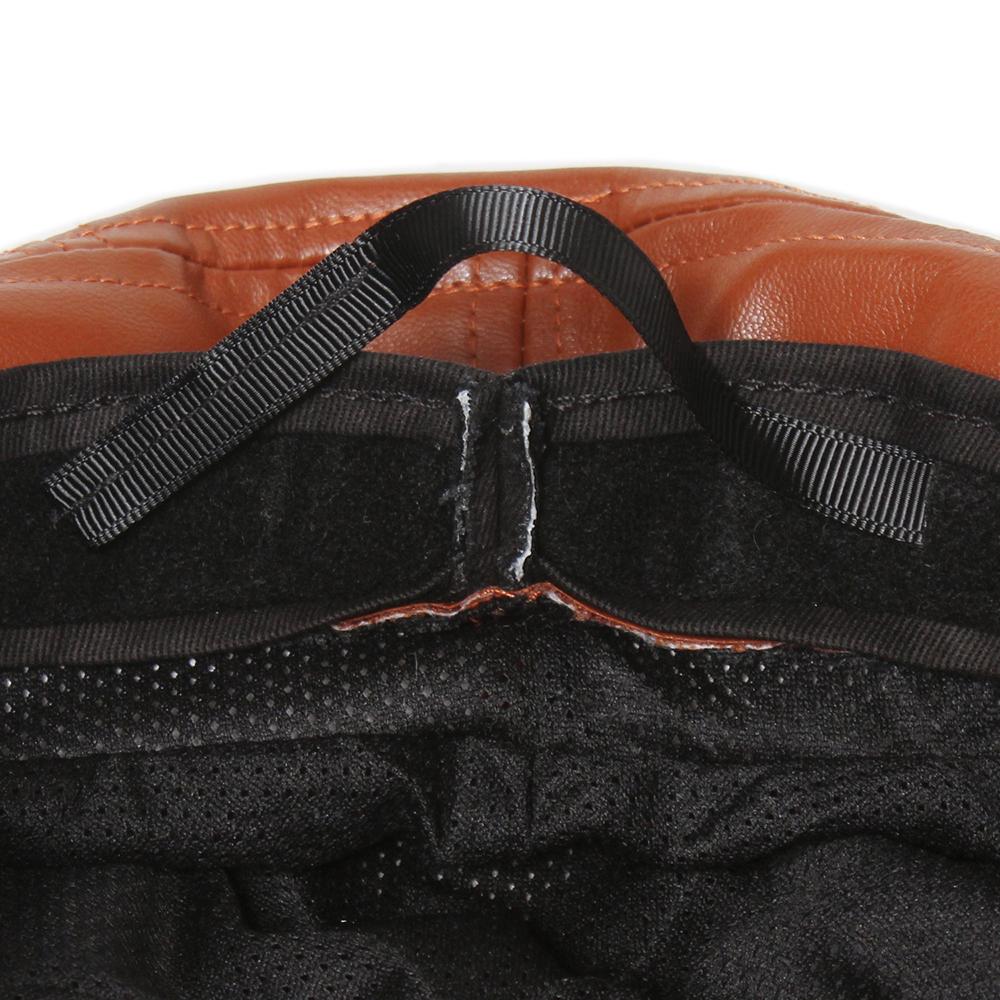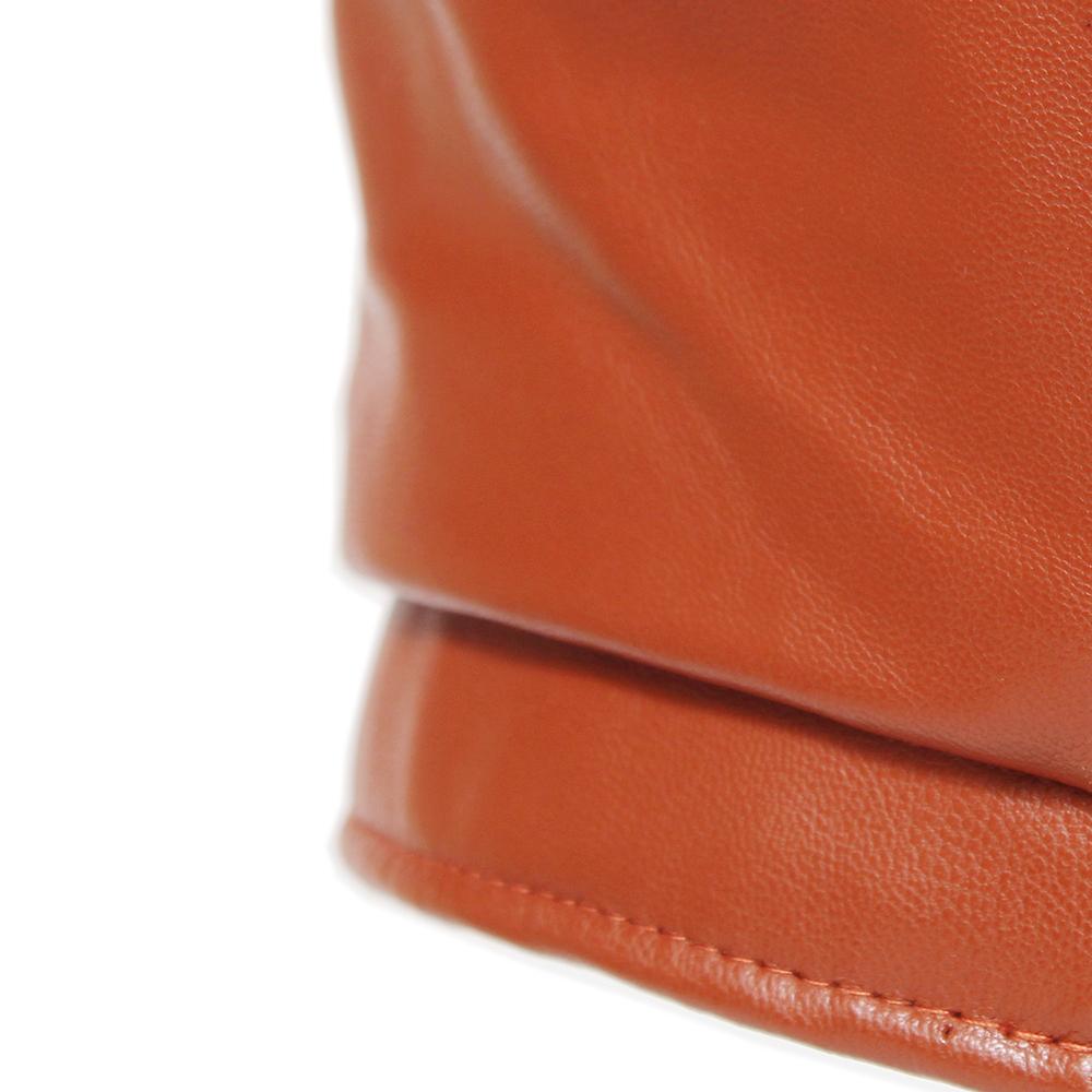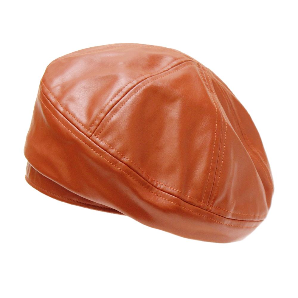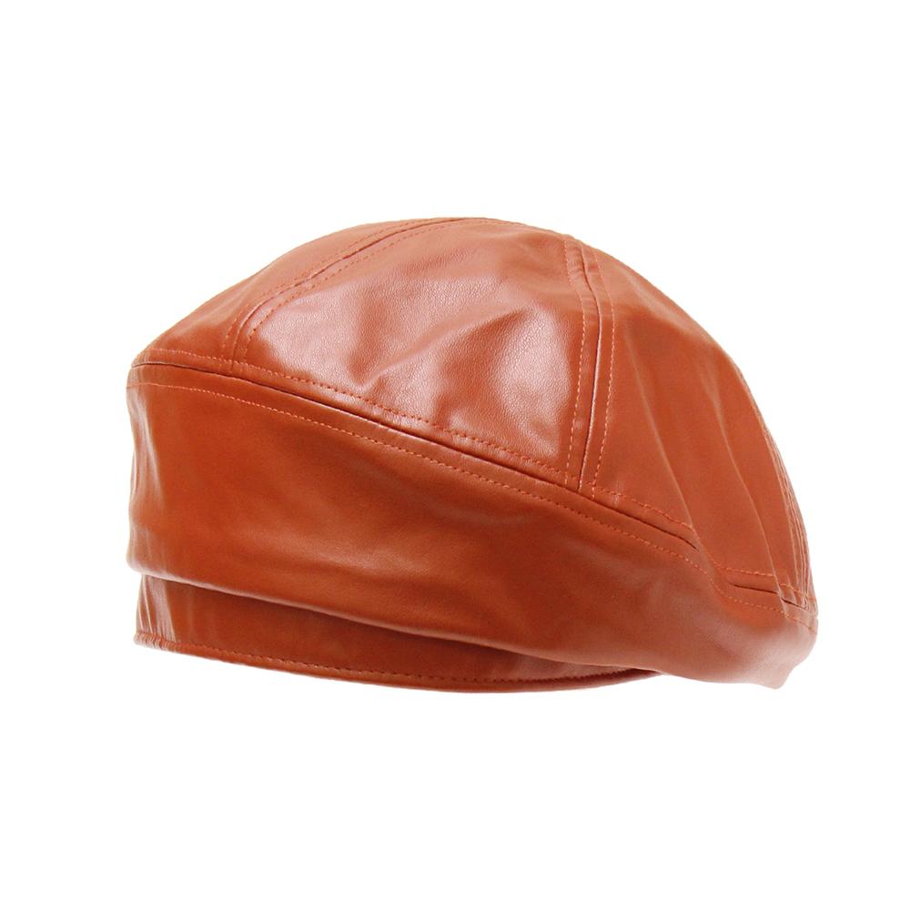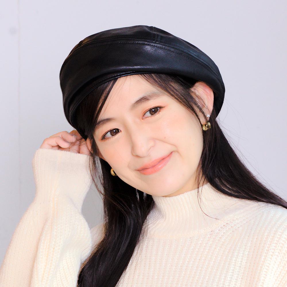 丸いシルエットのエコレザーを使用したベレー帽。重心を横にずらして被るのがおすすめ。男性も女性も使いやすい、コーデに馴染む秋冬ベレーです。内側にあるすべりの裏側には、サイズを調節して頂けるテープが付いていますのでご自分のサイズ感で被って頂けます。
