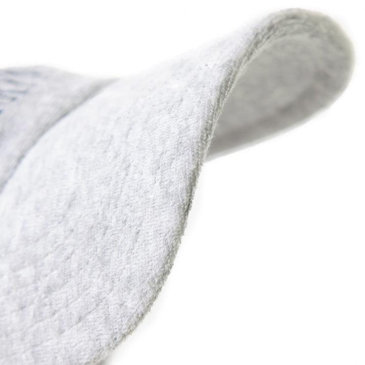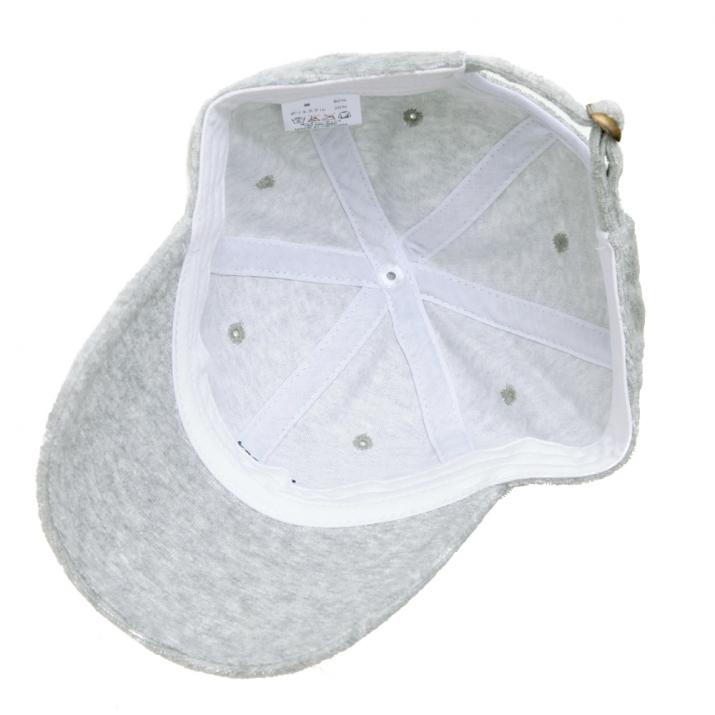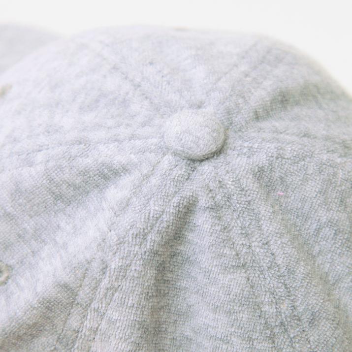 薄手で柔らかい、タオルのようなパイル素材が心地よいキャップです。帽子はとても柔らかく、つば以外は折りたたみもOK。着心地も優しく快適です。芯の入ったつばやスベリ部分のほかは生地の伸縮性も高く、被るストレスを感じにくい帽子です。裏地はつけず、ハトメ風の通気孔で通気性・吸湿性も抜群。シンプルな無地のデザインが、パイル素材の風合いを引き立てます。