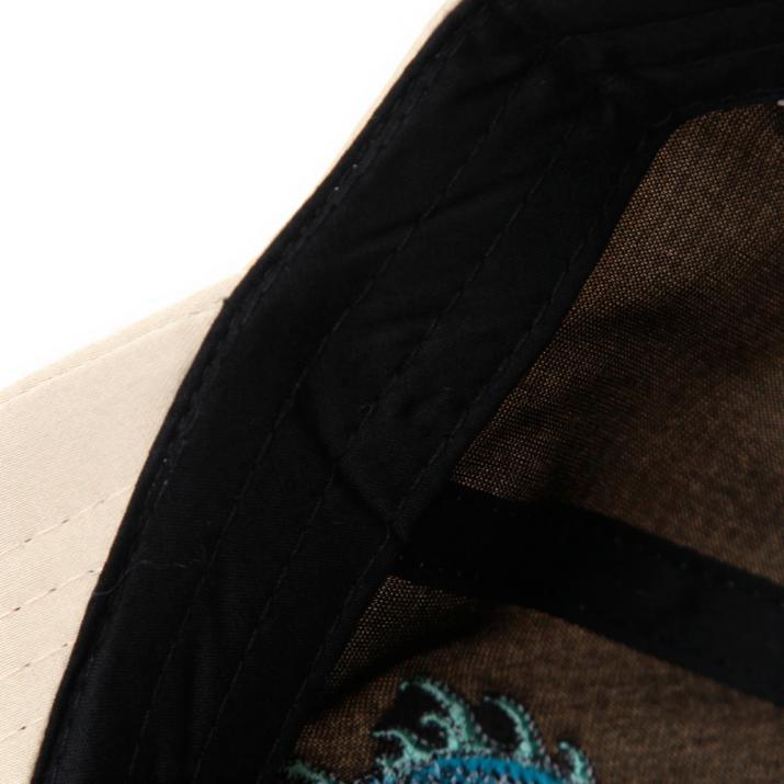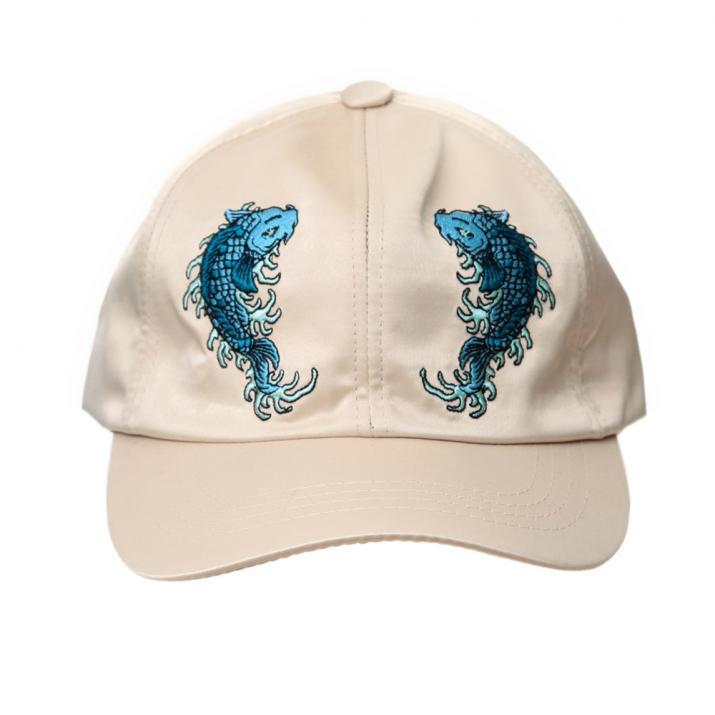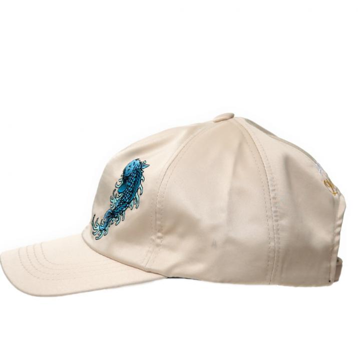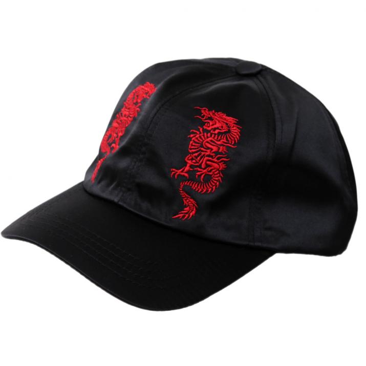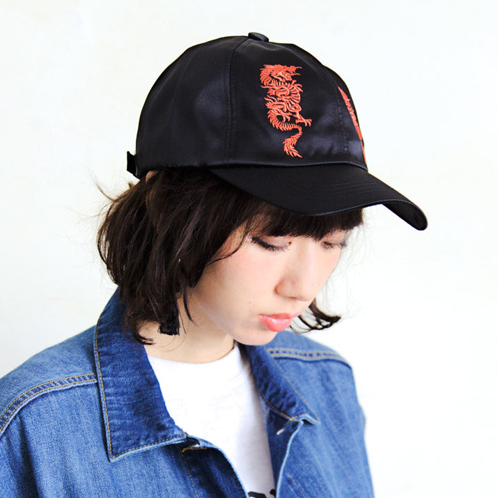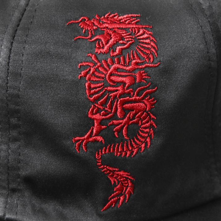 ベージュの本体には水しぶきを纏う青の鯉を、ブラックの本体には赤い刺繍糸で龍のシルエットを刺繍して。6枚接ぎのオーソドックスなスタイルに、中国のトラディショナルなイメージを融合した個性的な野球帽です。光沢のあるサテン生地が華やかでインパクトのあるアイテム。生地は丈夫ながら軽くて柔らかく、頭に馴染む被り心地です。裏地は付けず、通年涼しく被れます。