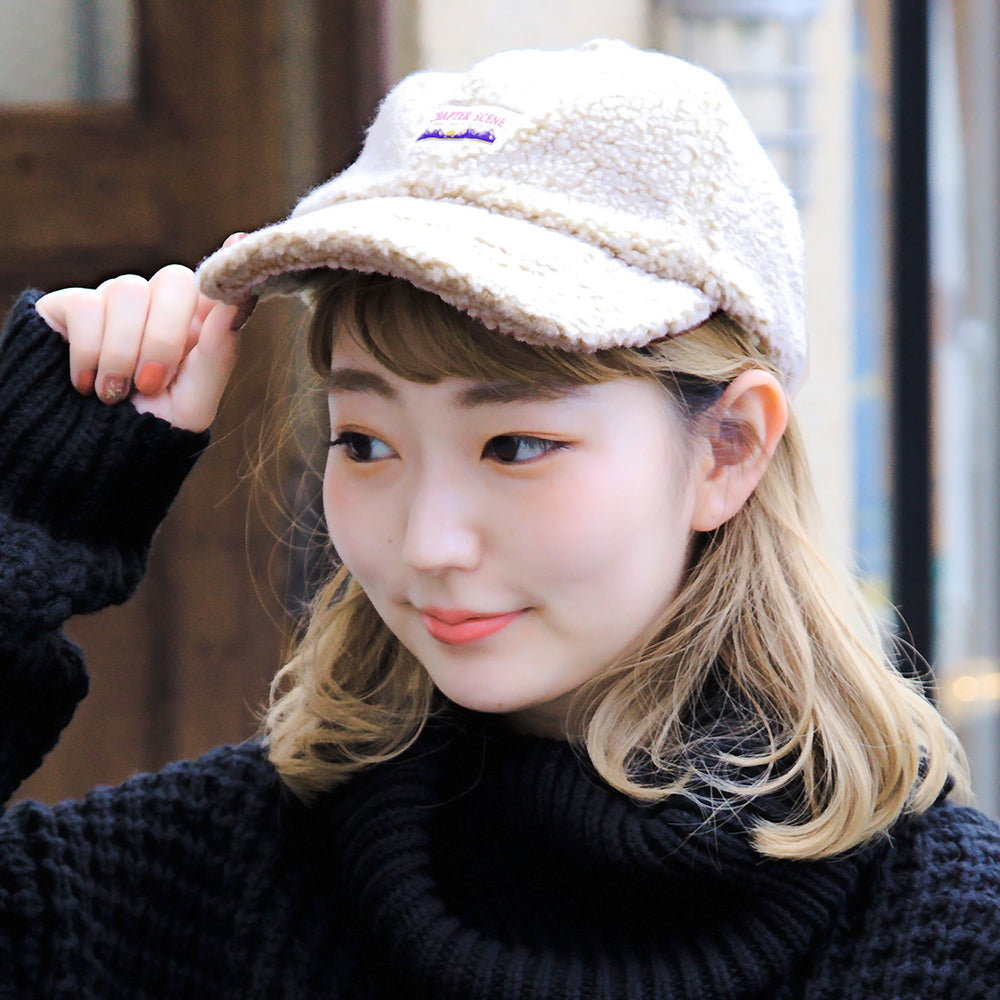 見た目にも温かく、シンプルなのにインパクトのあるボアキャップ。普段のコーデに一点投入するだけで、おしゃれコーディネートが完成します。モコモコのボアデザインがボリューミーでとても可愛いデザイン!落ち着いたトーンカラーなので、合わせやすいのも魅力です。