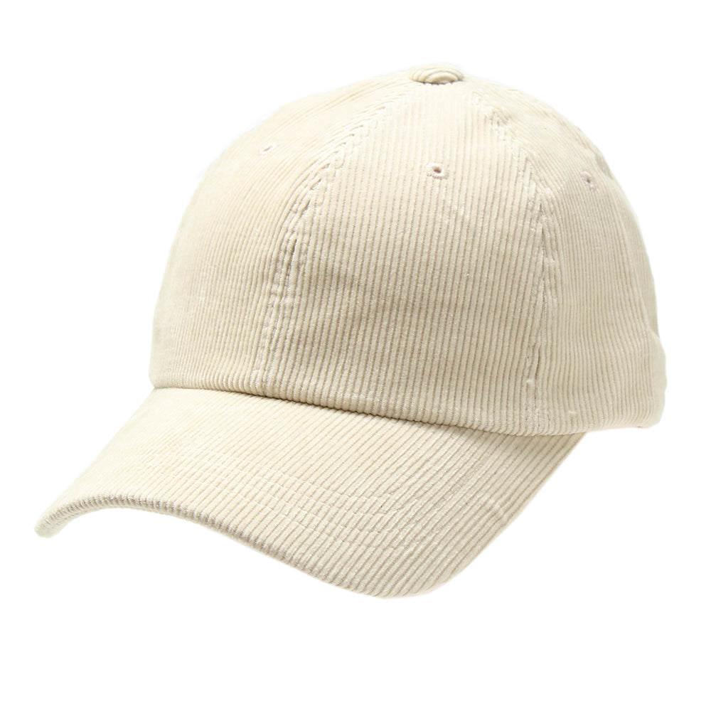 暖かみのあるコーデュロイ生地を使った、シンプルなコットンキャップです。やわらか生地に裏地をつけず仕上げて、温かい見た目でも被り心地はスッキリ爽やか。手洗い可能も嬉しいポイント。