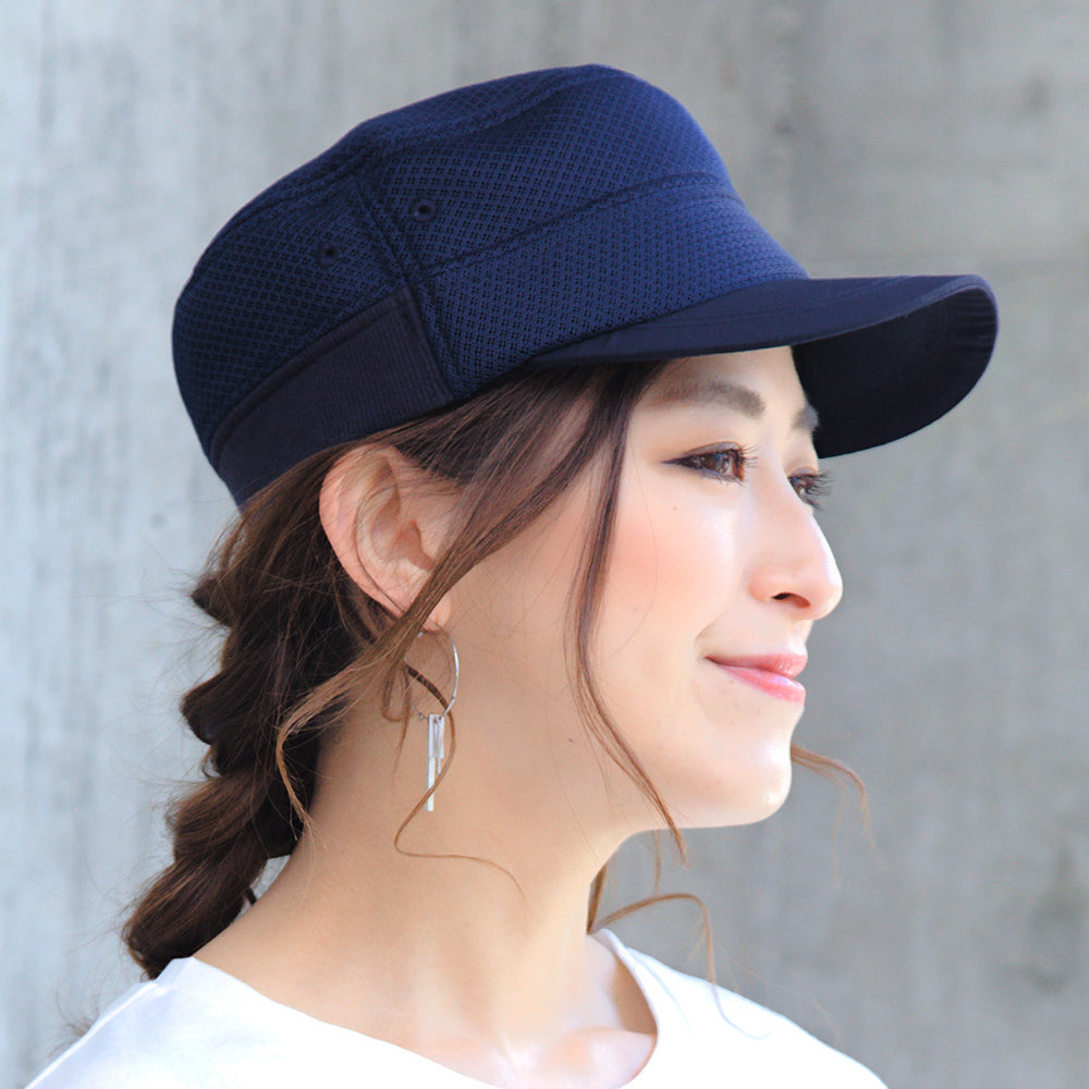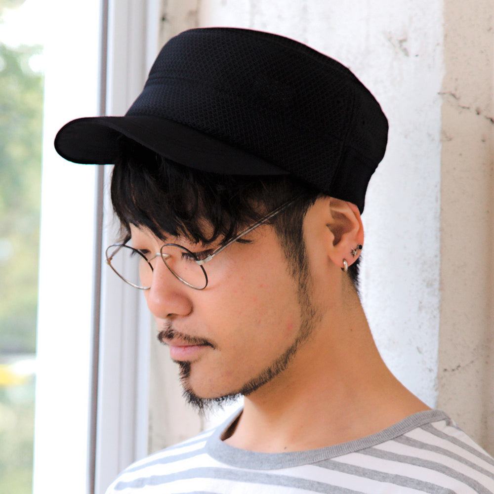 シンプルでベーシックなワークキャップ。頭部分すべてメッシュ素材となっていますので、通気性に優れとても爽やかな被り心地です。被り口部分にはリブ編みを使用し、伸縮性がありストレスを感じにくくなっています。春夏に嬉しいヘビロテ必須のカジュアルキャップです。