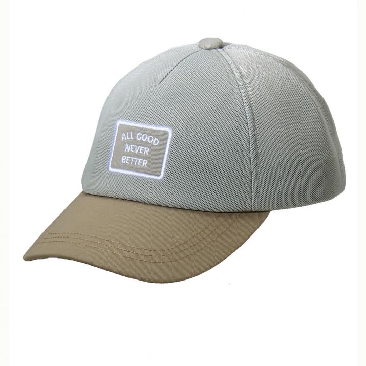 ボディとつばの配色デザインがカジュアルコーデにぴったり!ボディ部分のメッシュ素材は目の細かい生地を二枚重ねにし、しっかりとした被り心地と風通しの良い爽やかな被り心地を叶えます。