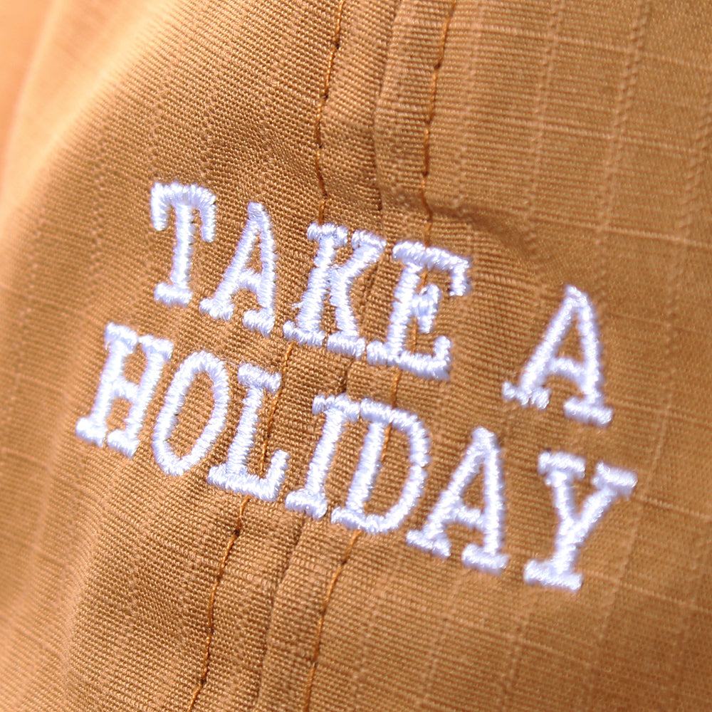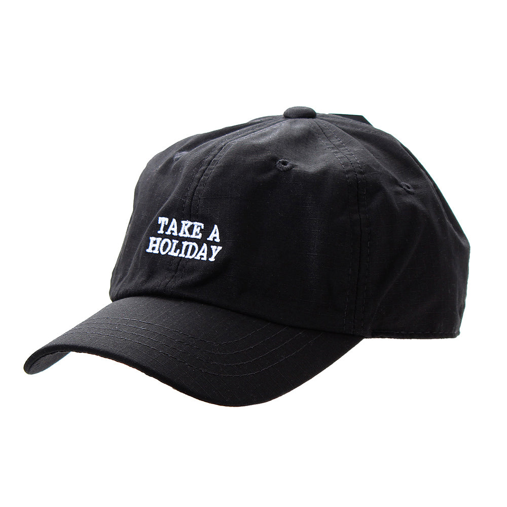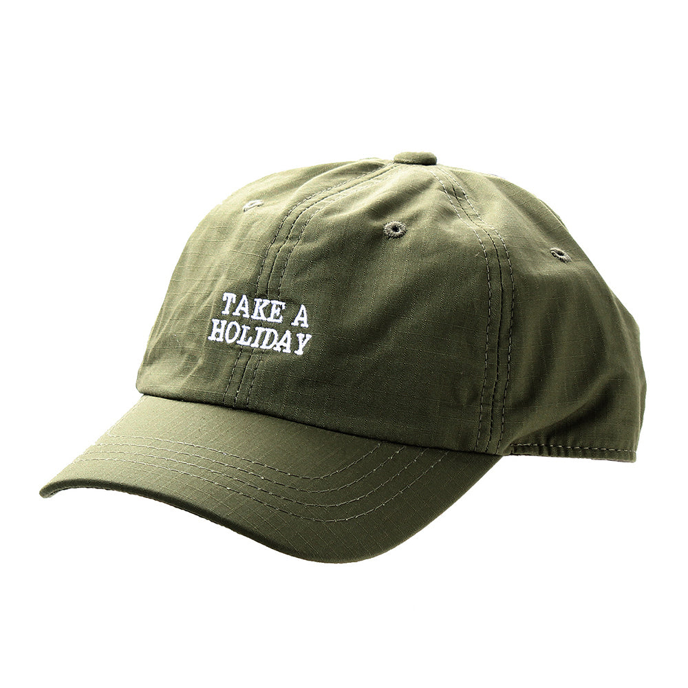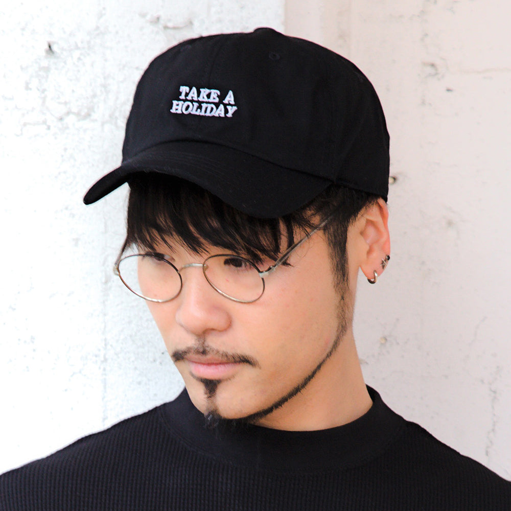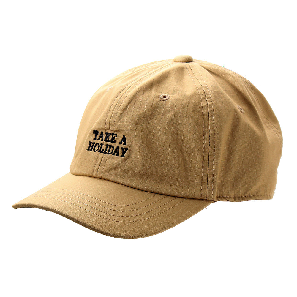 スタンダードなシルエットに「Take a Holiday」のロゴ刺繍がポイントのカジュアルキャップです。薄手の軽やかなコットン100%の生地感は、春から夏にかけてロングシーズンで活躍してくれます。シンプルなデザインが合わせやすく、ヘビロテ間違いなしのカジュアルキャップです。