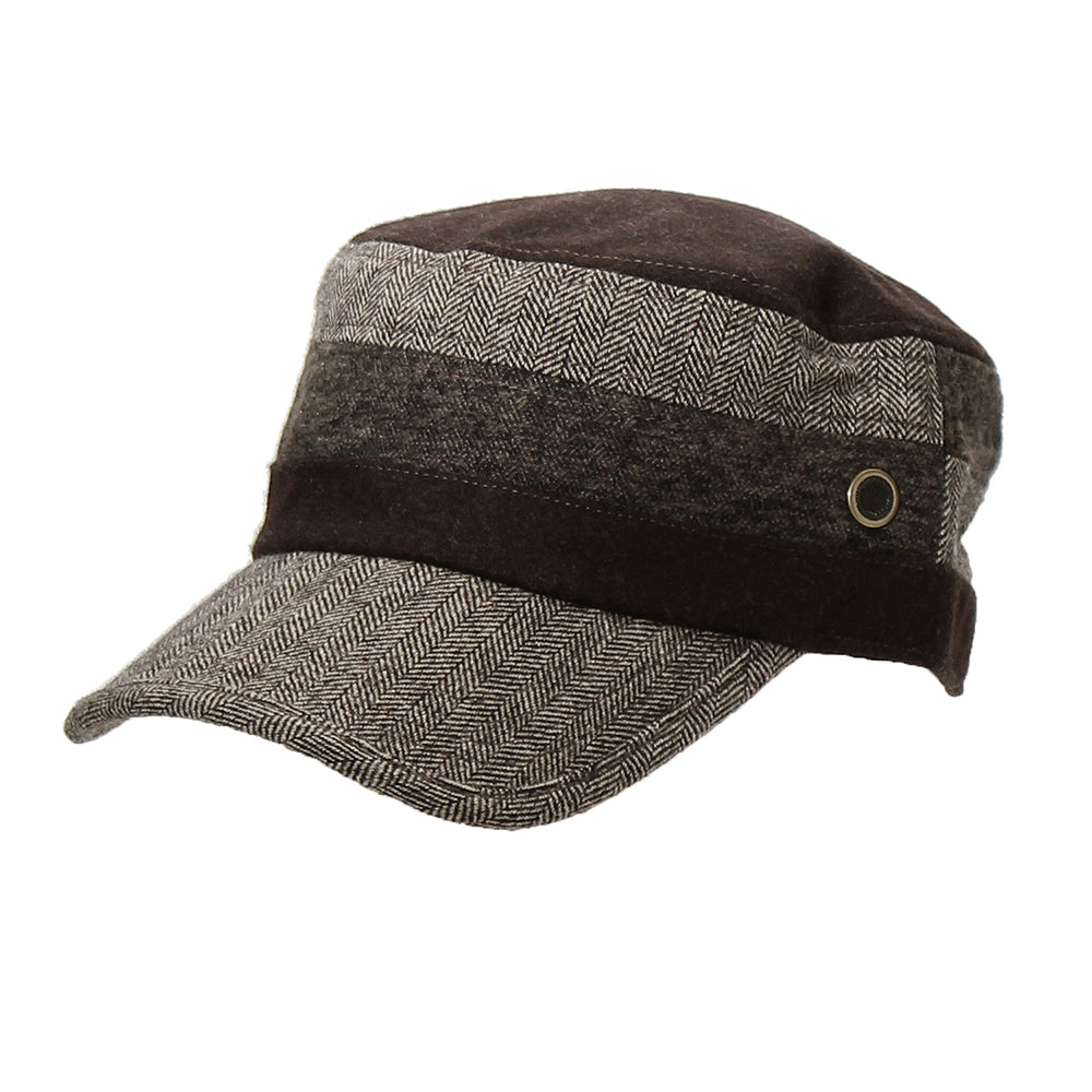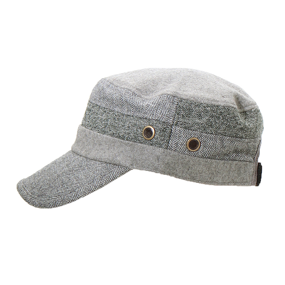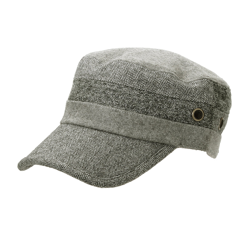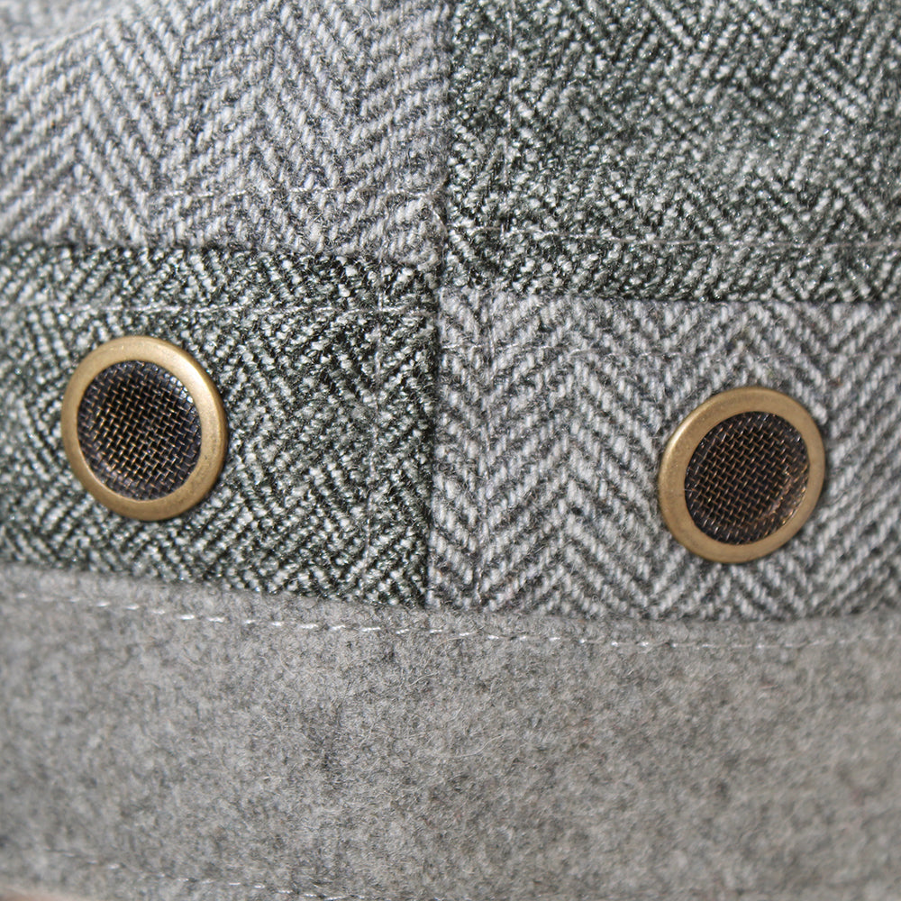 ヘリンボーン柄などの異素材を組み合わせた、おしゃれなワークキャップ。ウールの素材感が秋冬にぴったりの温かさを感じさせてくれます。シンプルなデザインなので、スタイルを選ばず合わせやすくサイドの通気性を意識したハトメがアクセントになっていて、さりげないこだわりを感じさせるおしゃれなデザインです。