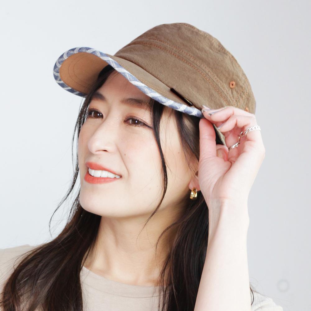 ツバにはしっかりと芯が入っていますので、くたっとした触り心地でもしっかりとシルエットをキープしてくれます。ツバ周りのパイピングがアクセントになった大人可愛いデザインになっています。