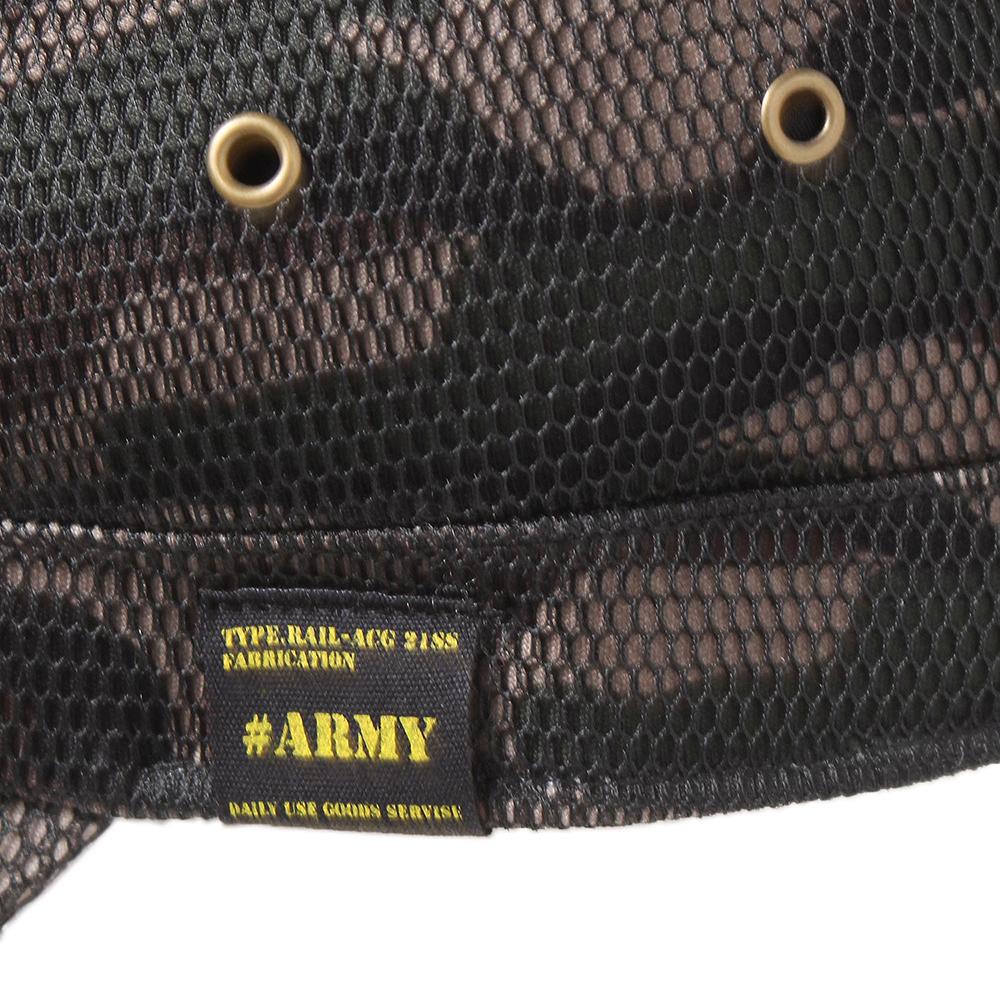 カジュアルスタイルにピッタリなワークキャップが登場しました!カモフラ柄に全面エアメッシュを施したインパクトのあるデザインが印象的。アーミーなデザインは、普段のカジュアルコーデのアクセントになること間違いなしです。手洗いがOKなので、いつでも清潔に保って頂けます。