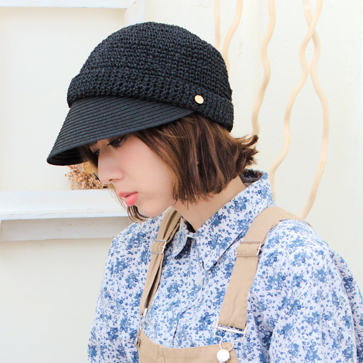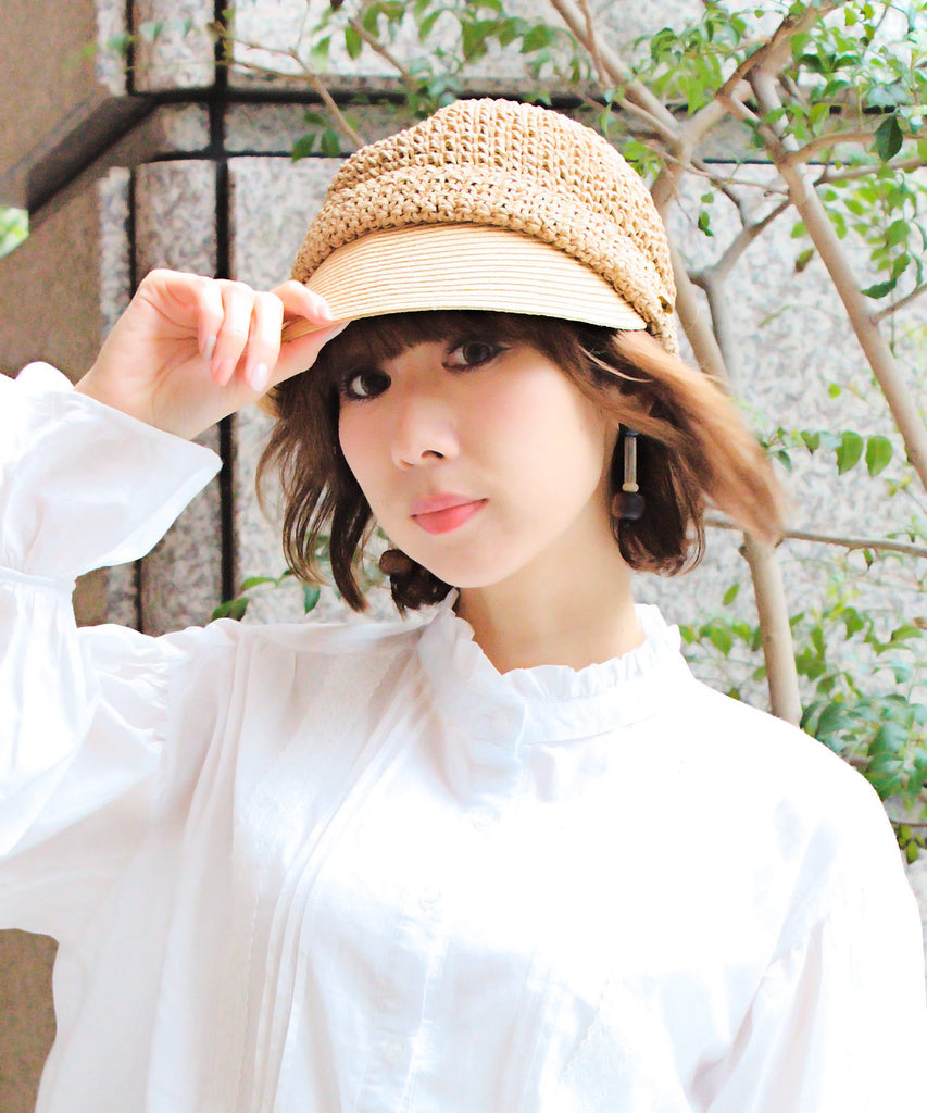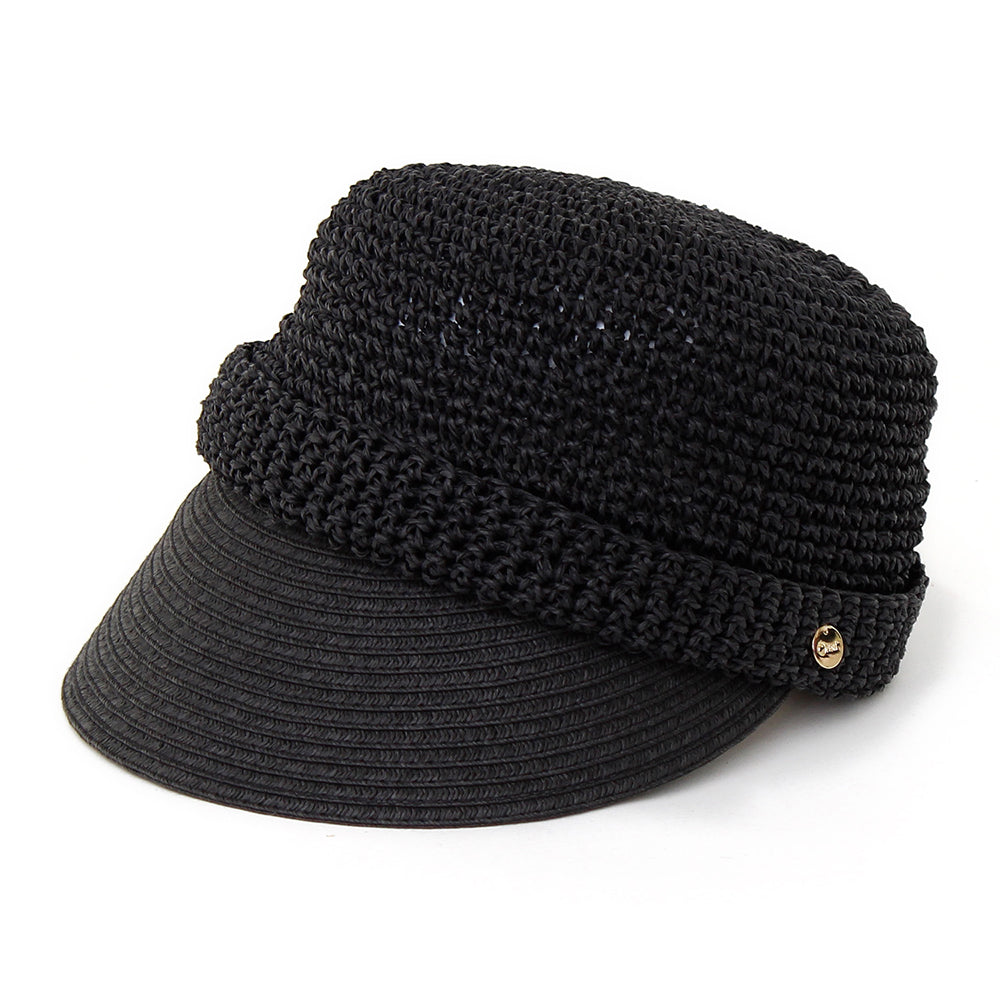 ペーパー素材でとても軽やかな、夏にぴったりの爽やかキャップです。サイドのゴールドチャームがさり気ないアクセントに。つばも広めなので、日よけにもバッチリです!とても柔らかい素材感なので、折りたたんでの持ち運びにも便利です。