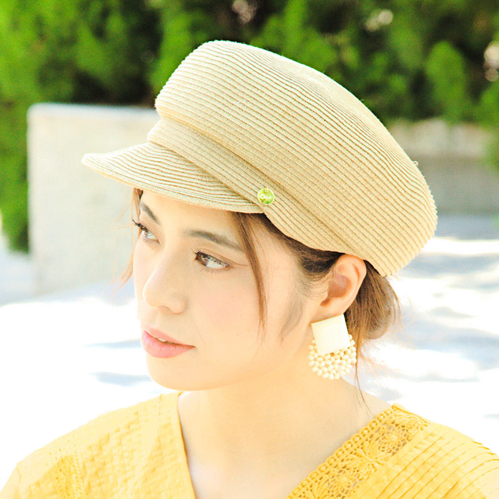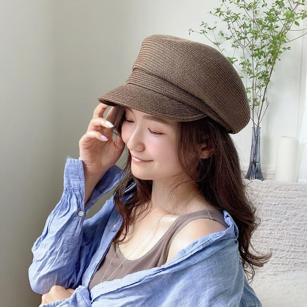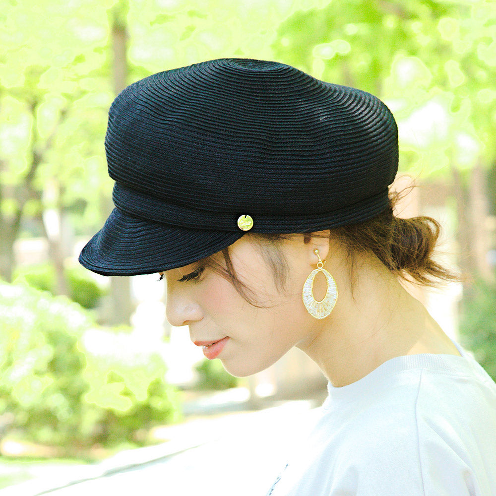 夏素材のポリエステルブレードを使用したキャスケットです。しっかりしたシルエットでかぶるだけで形が決まるので帽子初心者にもおすすめです。金タグも高級感があって夏のどんなコーデ・シーンにも合わせやすく大活躍すること間違いなしです。