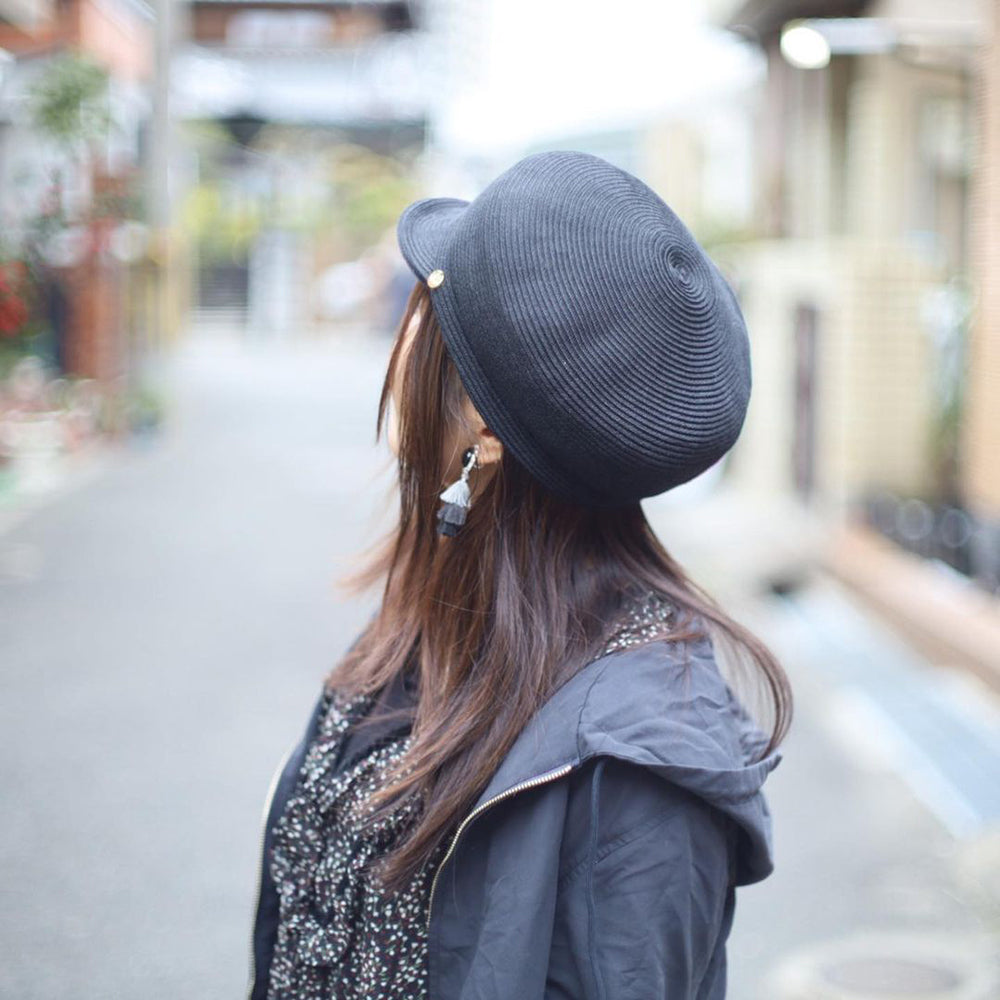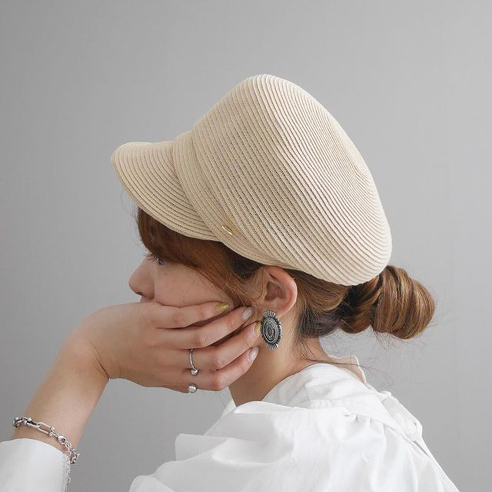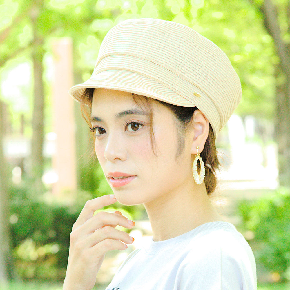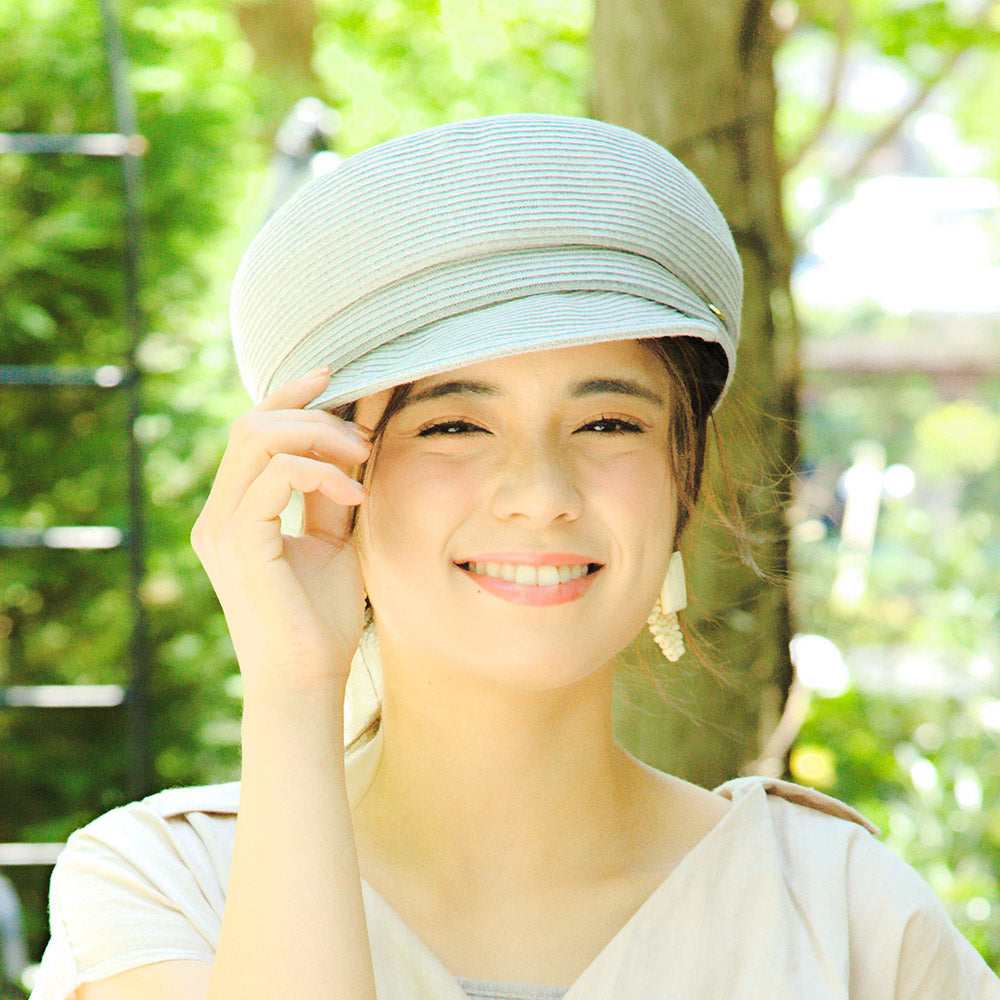 夏素材のポリエステルブレードを使用したキャスケットです。しっかりしたシルエットでかぶるだけで形が決まるので帽子初心者にもおすすめです。金タグも高級感があって夏のどんなコーデ・シーンにも合わせやすく大活躍すること間違いなしです。