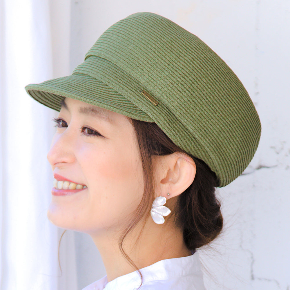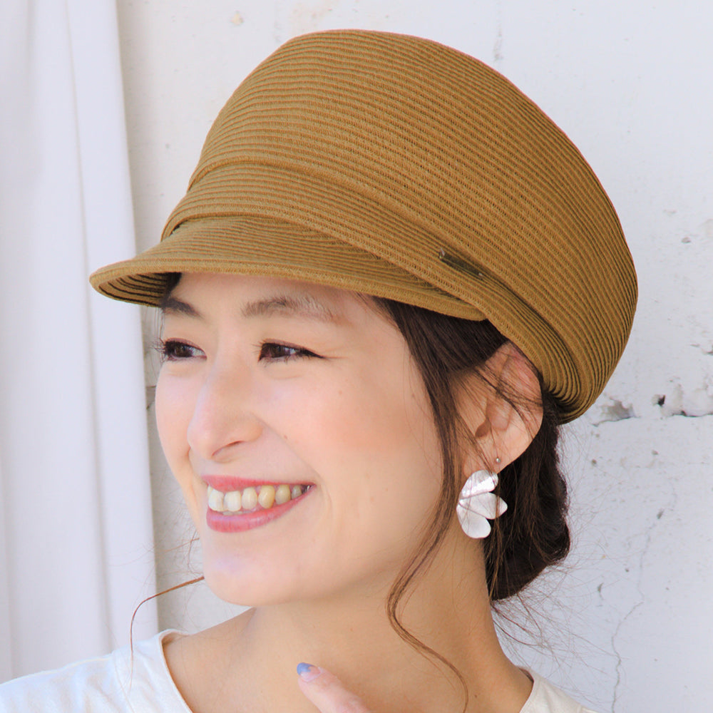 細やかなブレード編みが爽やかなキャスケット。サイドの「ORIENT」タグがアンティークな雰囲気の、お洒落なアクセントになっています。サイズ調節も可能なのでぶかぶかせず、フィット感があり、深めのシルエットなので小顔効果もバッチリ!