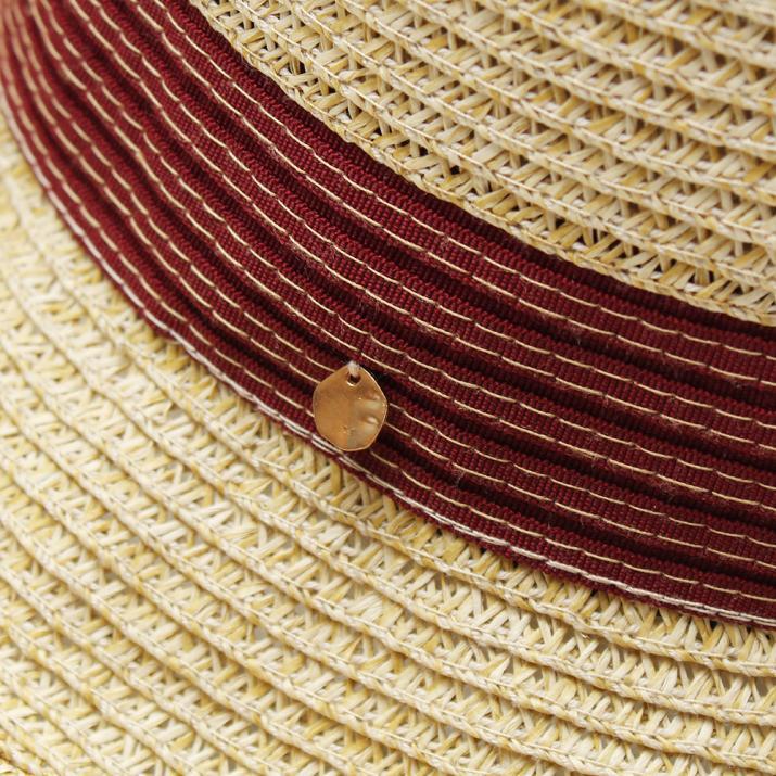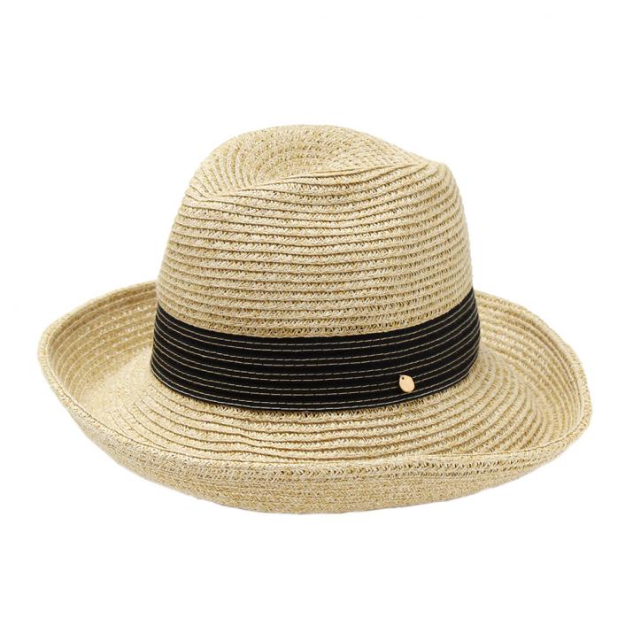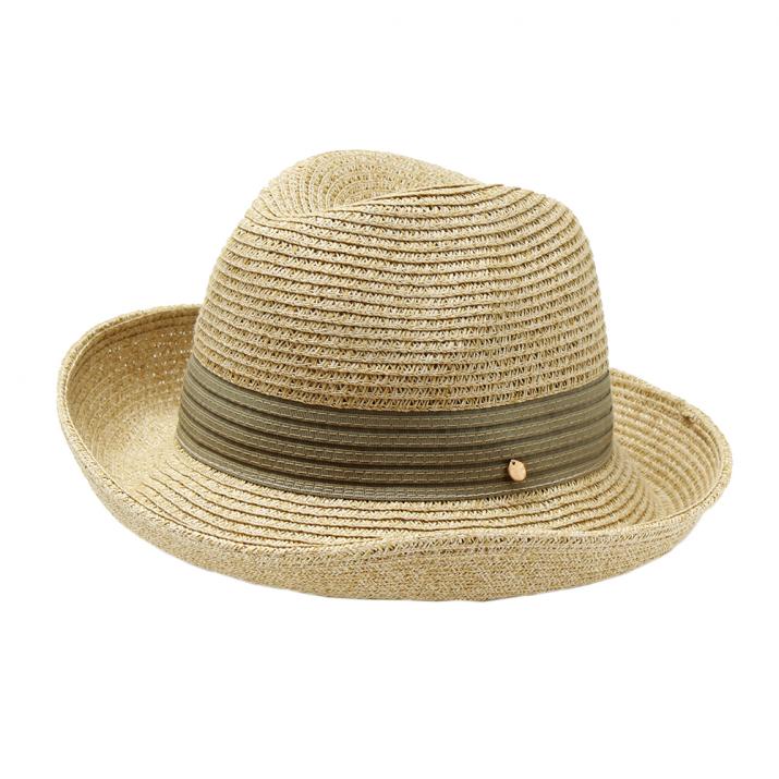 中折れタイプのつば広ハットです。つば広のデザインでUVケアもばっちり!ナチュラルな細編みは通気性にも優れ軽やかで爽やかな被り心地です。中折れタイプのシルエットは、大人カジュアルにぴったりのデザインです。グログランの太リボンとゴールドチャームがコーデのアクセントにも!