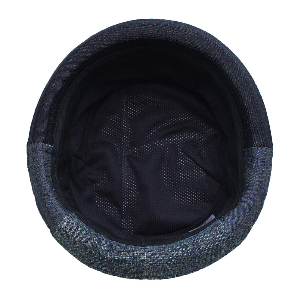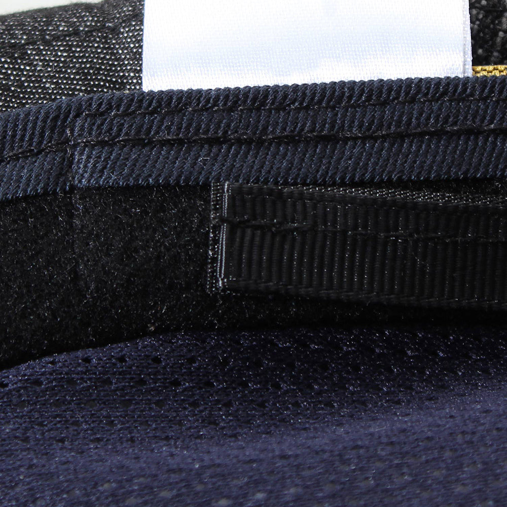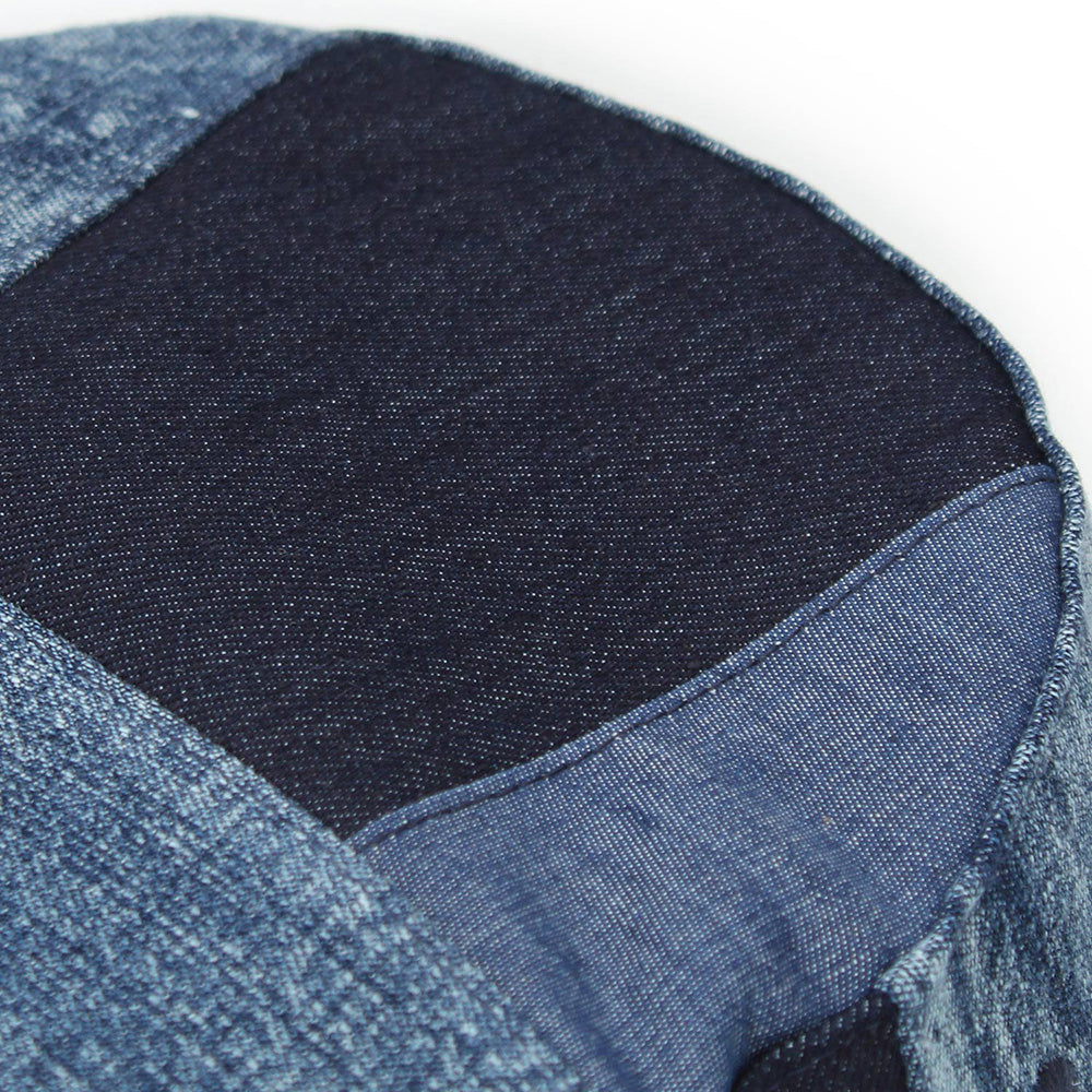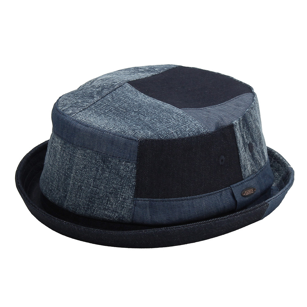 外側にはデニム素材のパッチワーク、内側には通気性に優れたメッシュ地を使用し、被り心地抜群のポークパイハットです。生地は柔らかく、くたくたとした素材感ながら、ツバがしっかりしているので被った時の安定感もバッチリです。