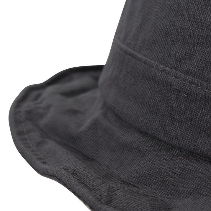 ウォッシュ地のくたっとしたカジュアル感がお洒落な、中折れ風バケットハット。ツバ先にワイヤーが入っていますのでお好みのサイズ、形に調節可能です。サラッと被れる気軽さが嬉しい、大人のカジュアルアイテムです。