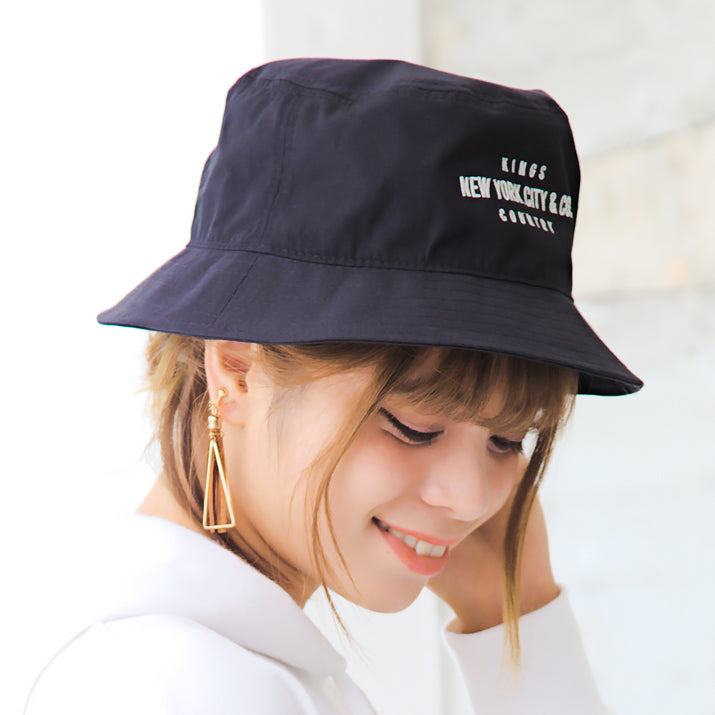 撥水加工を施した、機能性に優れたバケットハットです。フロント部分のロゴ刺繍がカジュアルコーデのアクセントになり柔らかい素材なので小さく折りたたんでの持ち運びにも便利なのでフェスやアウトドアにもピッタリです。