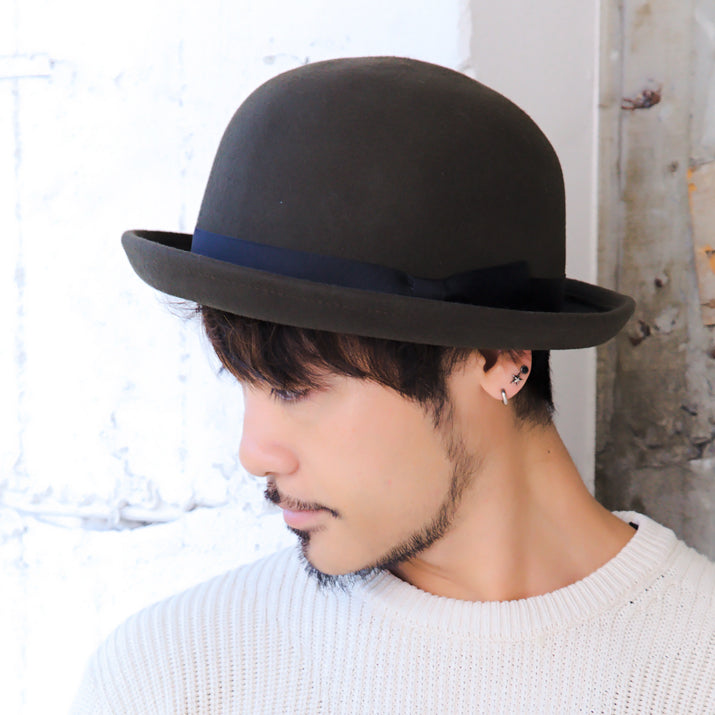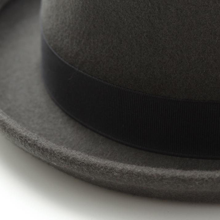 シンプルで格調高い雰囲気の香る、フェルトボーラーハットです。薄手のフェルト生地をしっかりと型入れして作られたこの帽子は、柔らかくもハリのある被り心地。つばの先は端縫いして、しっかりとした仕上がりです。カジュアルからフォーマルまで、幅広くお使い頂けるアイテムです。