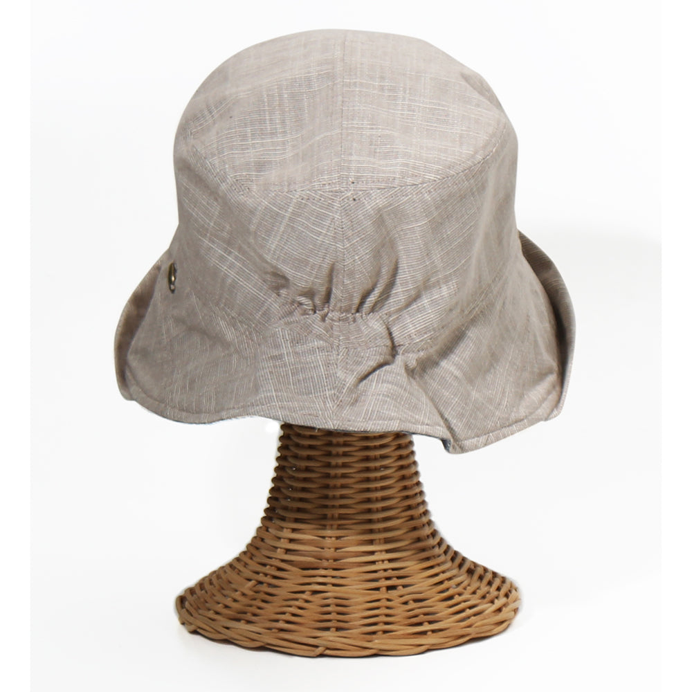 上品な印象のオブザー型ハット。コットン100%の優しい肌触りで、ナチュラルな印象が可愛い!後ろゴム仕様なのでフィット感があり安定した被り心地です。