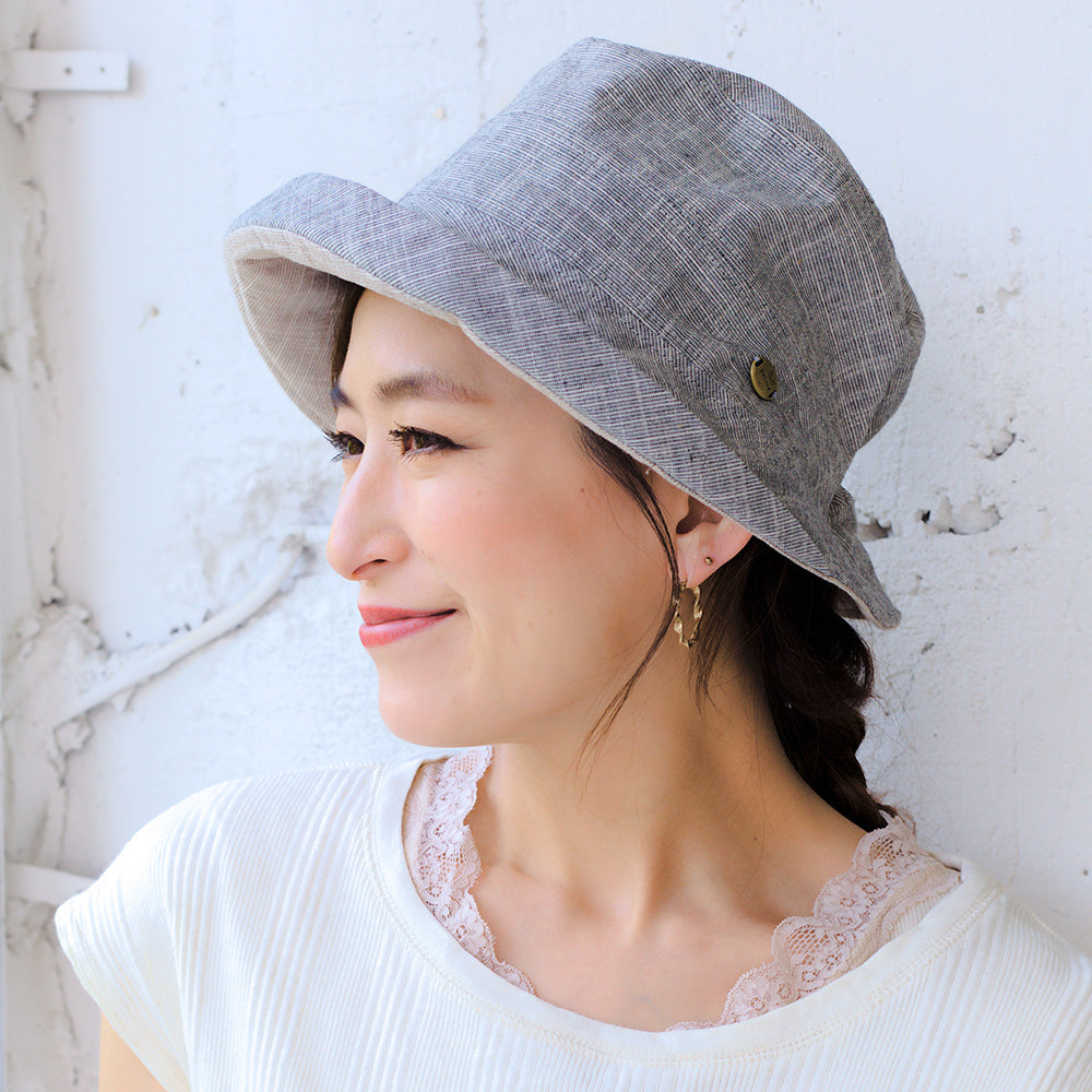 コットン100%の優しい肌触りで、ナチュラルな印象が可愛い!後ろゴム仕様なのでフィット感があり安定した被り心地です。