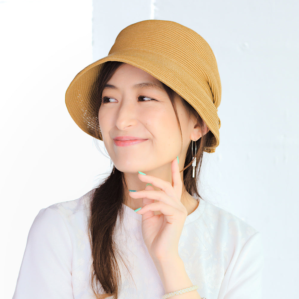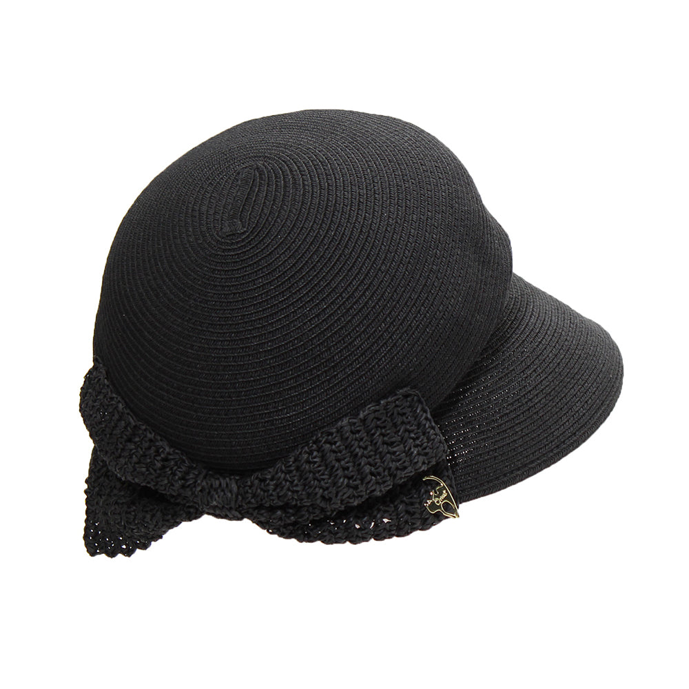 広すぎないつばで、ブレード編みの爽やかなUVハンクハット。ザックリ編み上げた後ろ部分のリボンモチーフが華やかで、サイドの猫チャームが愛らしい、大人可愛いデザインに仕上がっています。