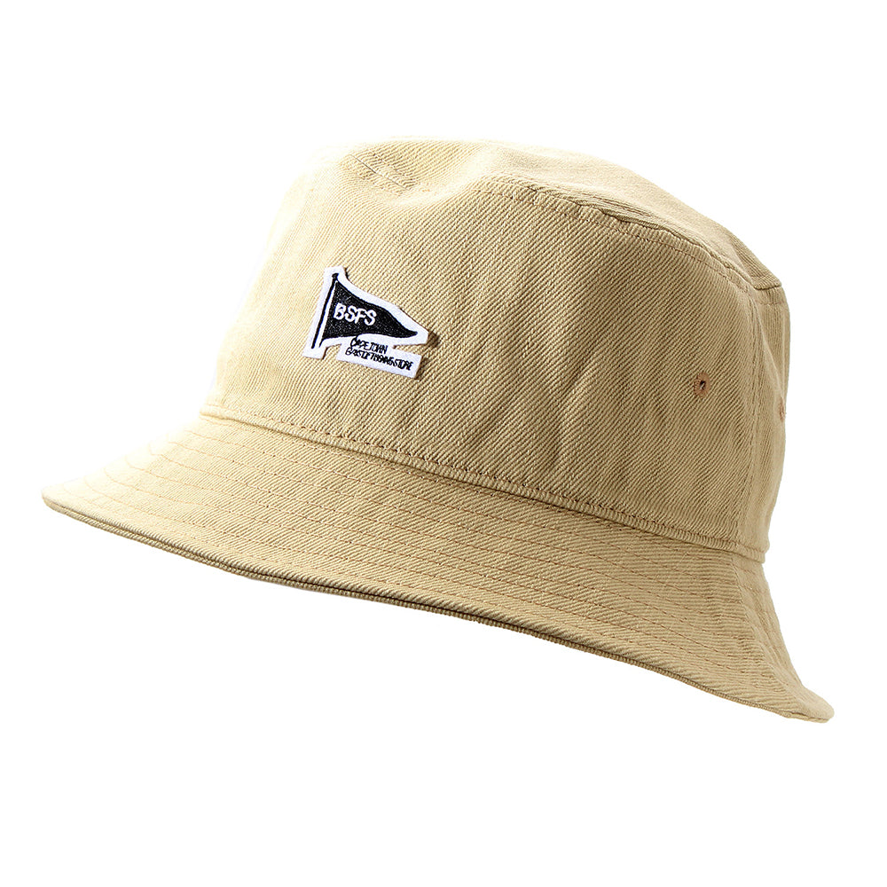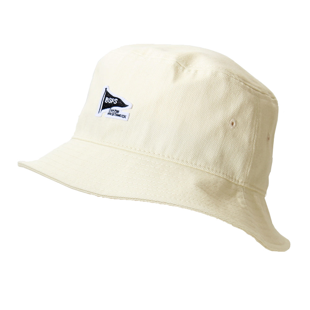フロントのフラグワッペン愛らしいバケットハット。コットン混の柔らか素材と裏地には織り目の細かい生地を使い、被り心地も軽く快適です。普段使いはもちろん、アウトドアやお出かけにもおすすめ!