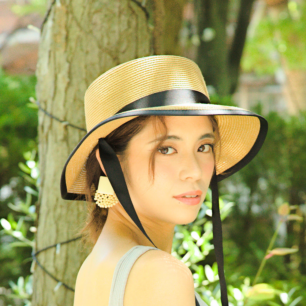 夏のクラシカル、カジュアルスタイルにおすすめのカンカン帽。垂れたリボンは前で結んでガーリーな雰囲気にしたり、後ろで結んだり、もちろんそのまま垂らしたりとアレンジを楽しんで頂けます。つば部分のパイピングもコーデのアクセントになり、シンプルなので合わせやすい!この夏のおしゃれコーデを楽しんでみてください♪