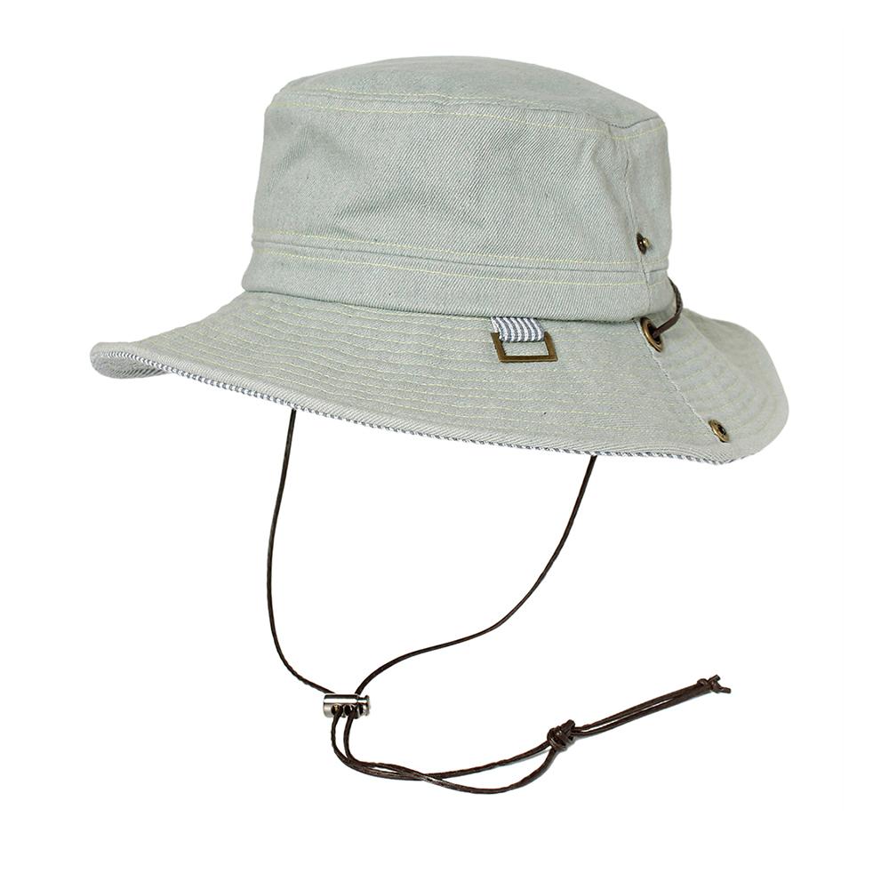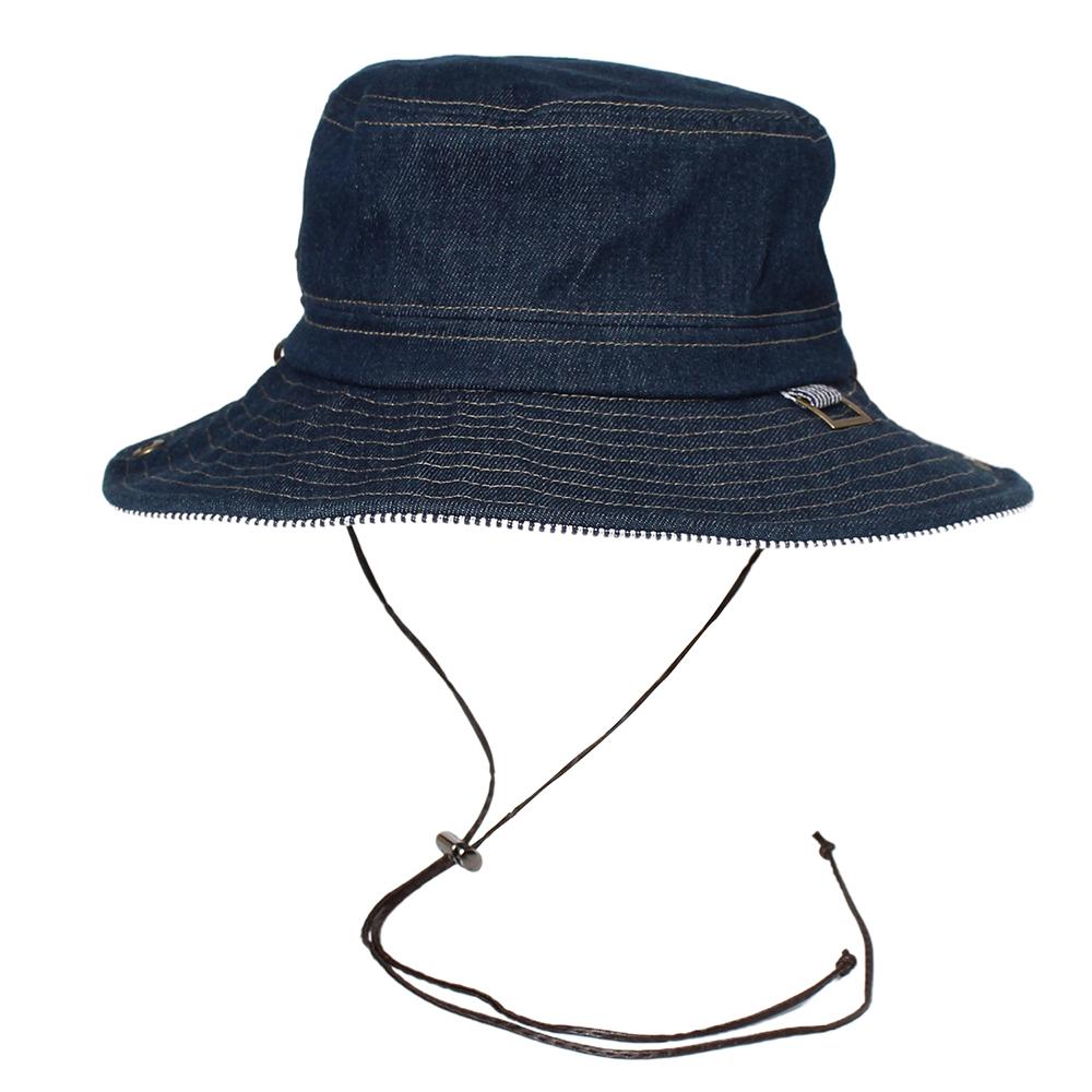 レジャーやアウトドアには欠かせないアドベンチャーハット!カジュアルスタイルにマッチするデニム地にカラーステッチで遊び心をプラス。ツバを曲げてワイルド・テンガロン型としても被っていただけます。手洗い可能なのも嬉しいポイント。