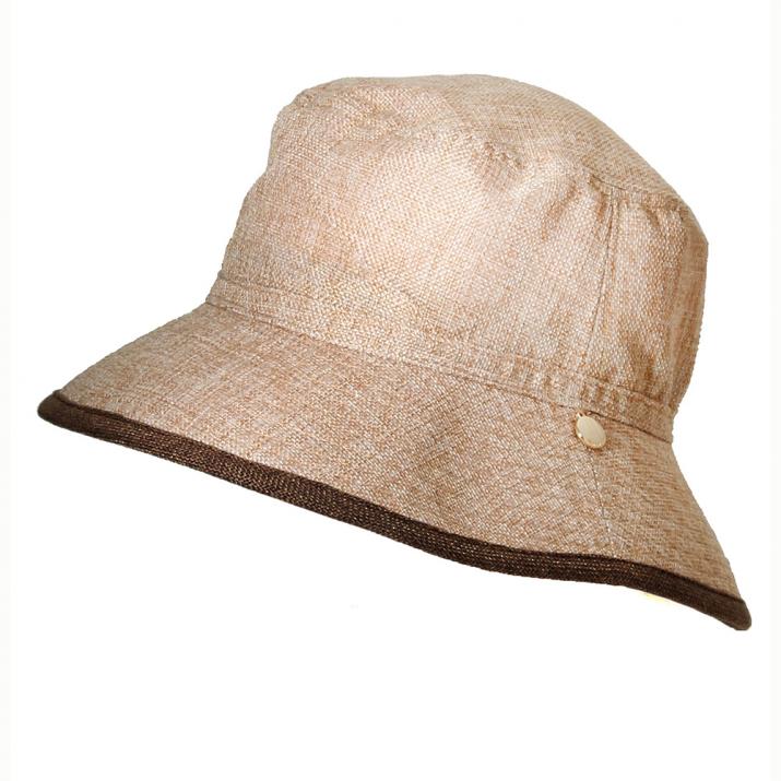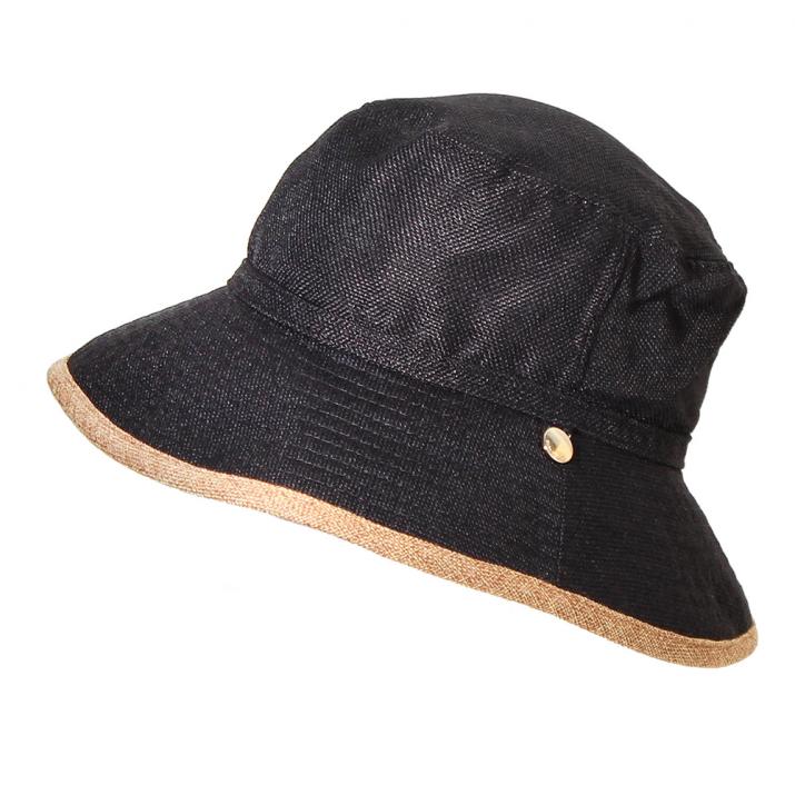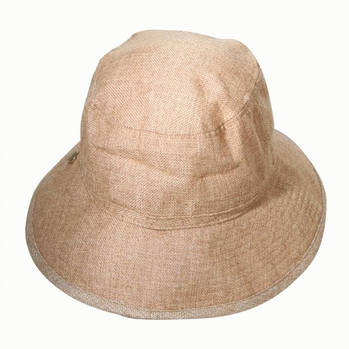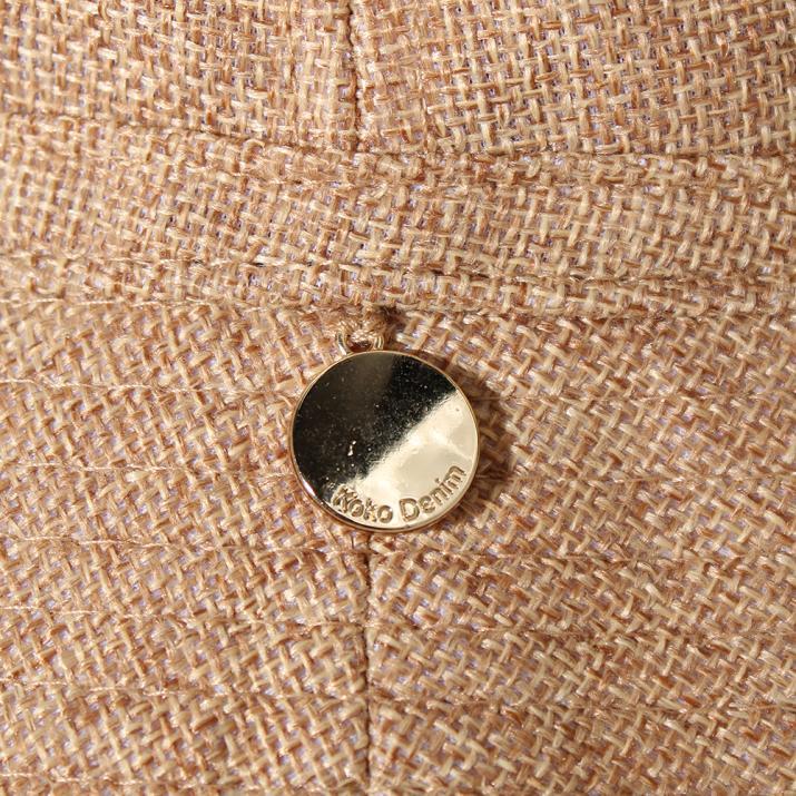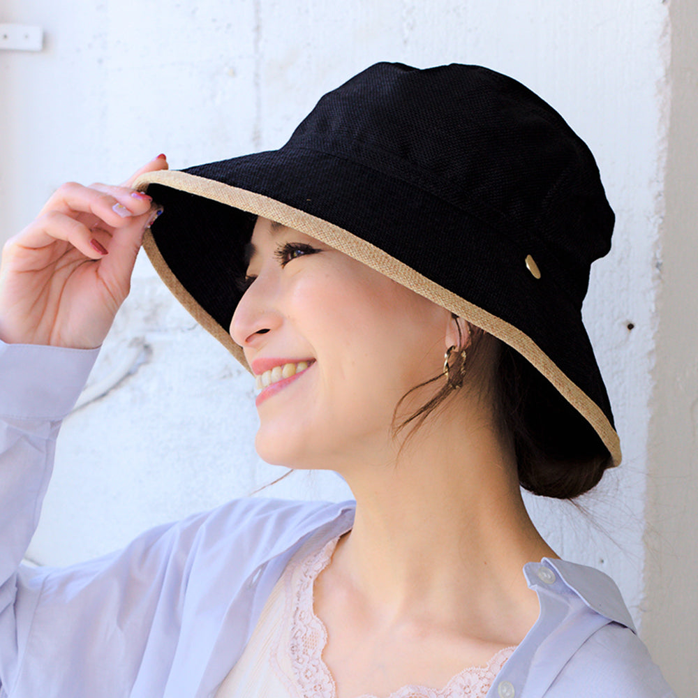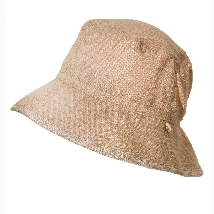 熱中症対策、紫外線、UV防止に!ポリリネンの爽やかな素材感と、サイドのゴールドチャームが大人可愛いデザインのバケットハットです。ブリム部分は長めの設定なので、紫外線をしっかりカット!