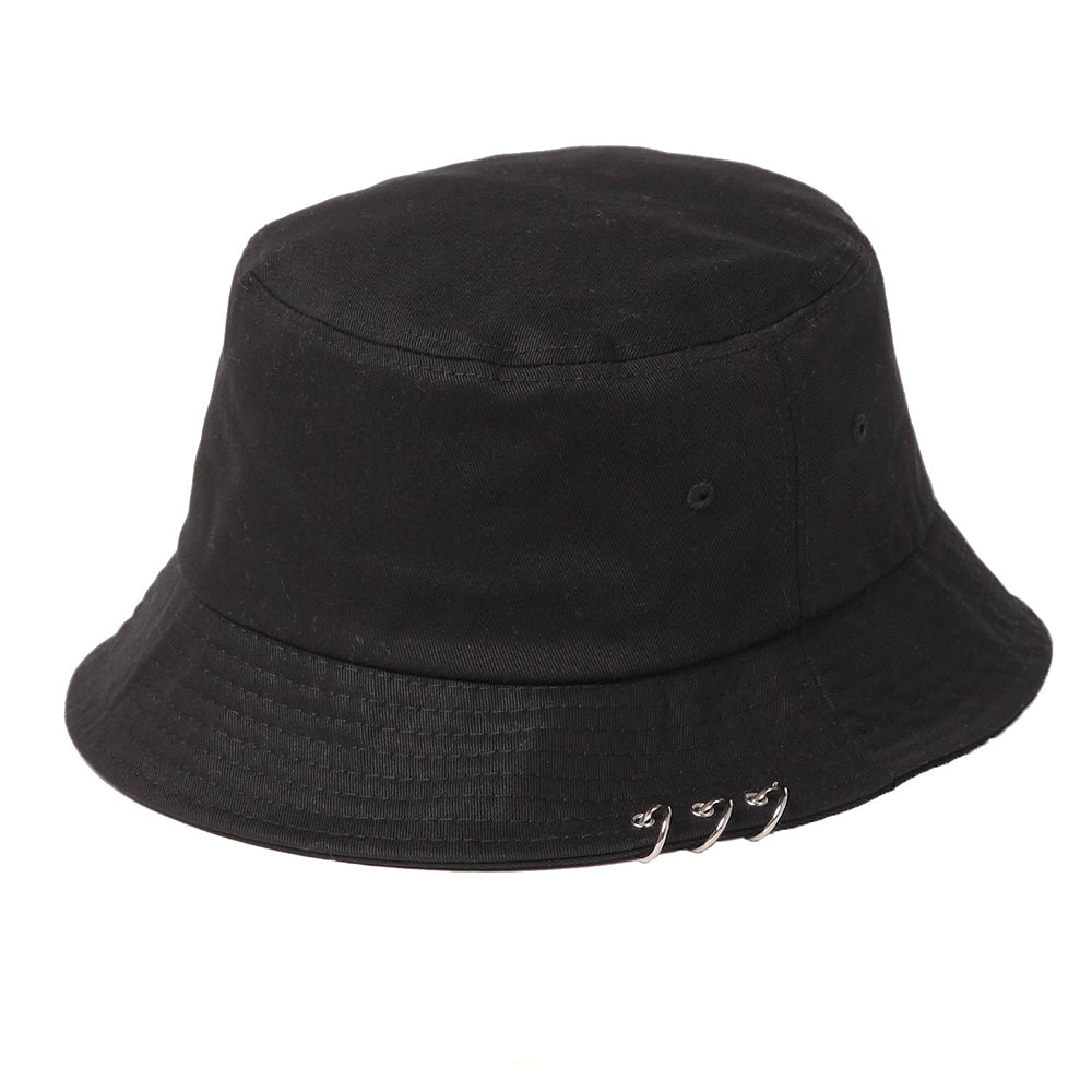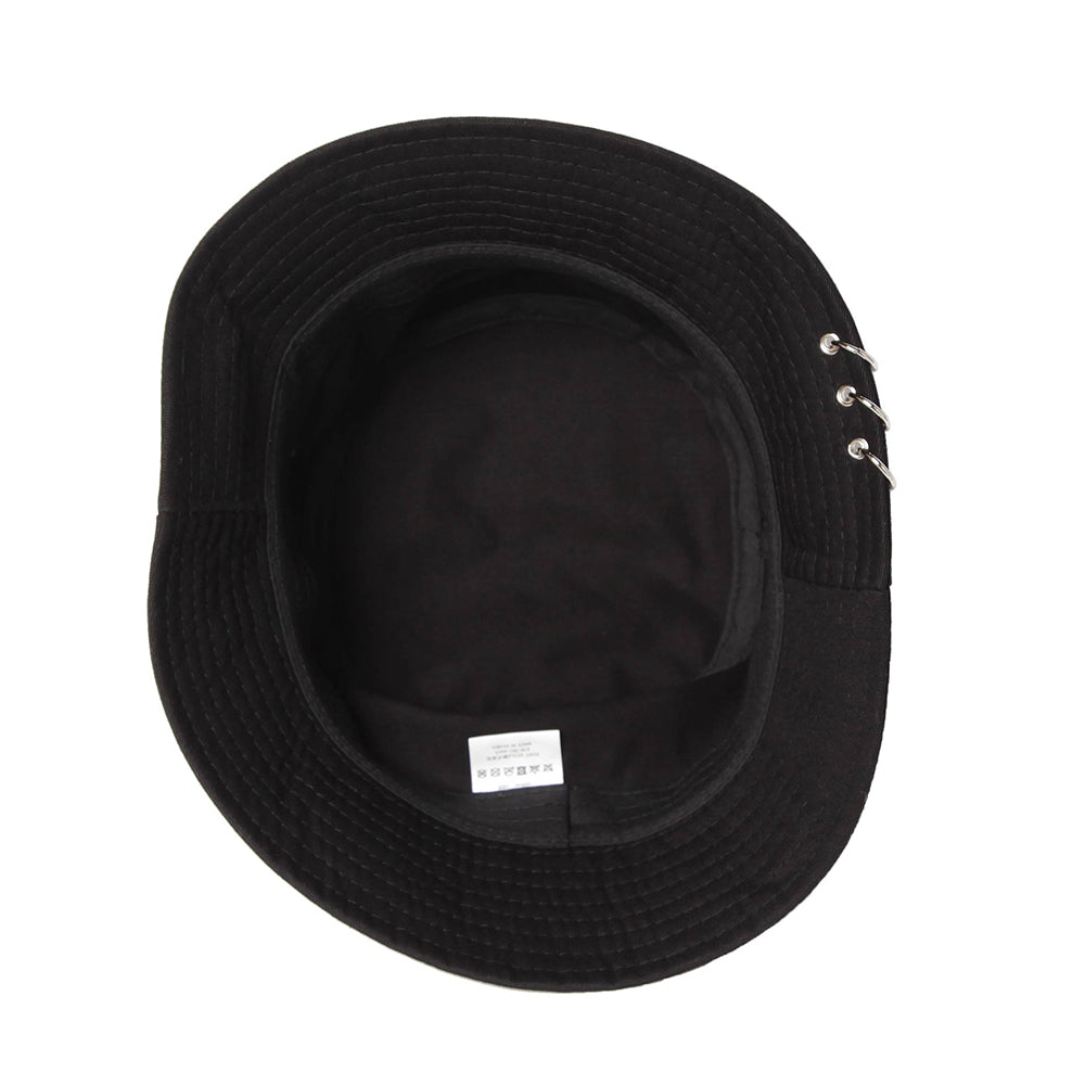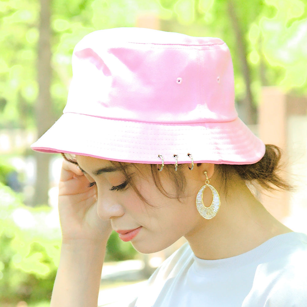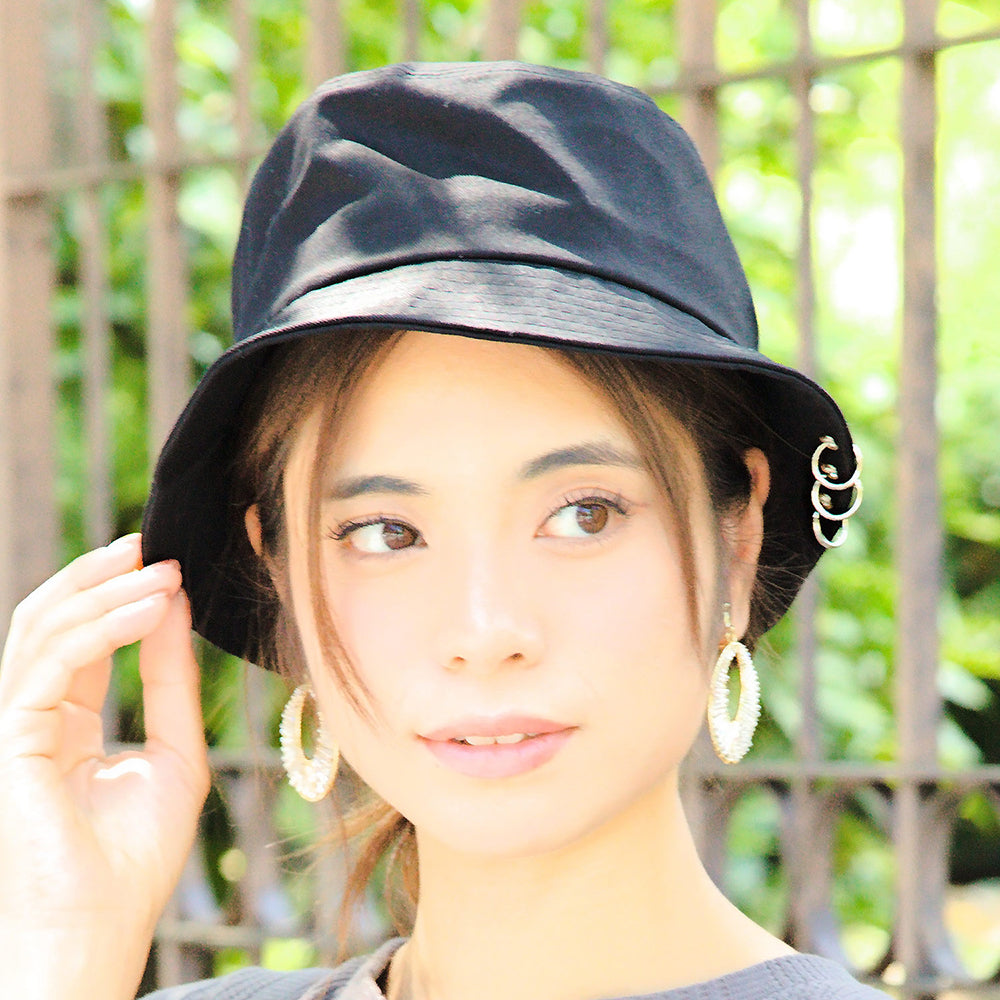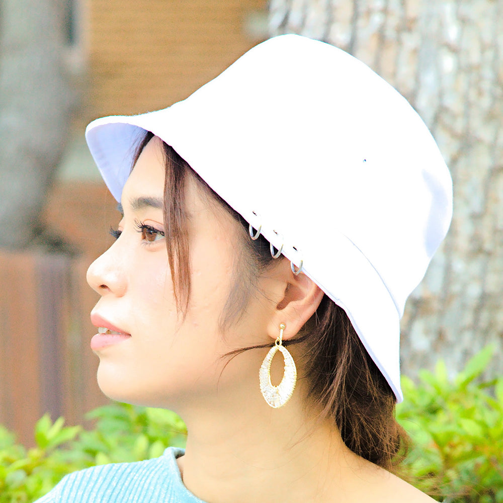 つばに付いたシルバーリングがアクセントになったお洒落なバケットハット。いつものカジュアルスタイルにスパイスを効かせたお洒落アイテムです。コットン100%で柔らかな被り心地です。