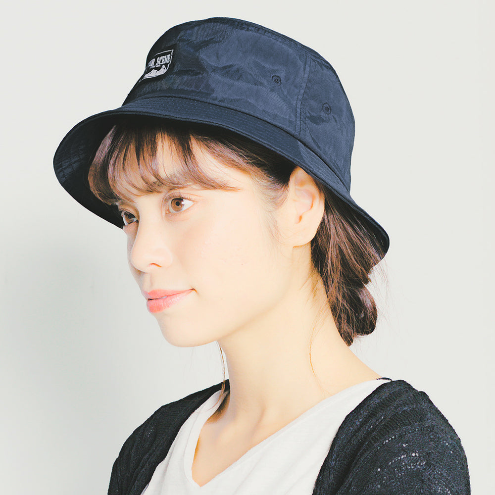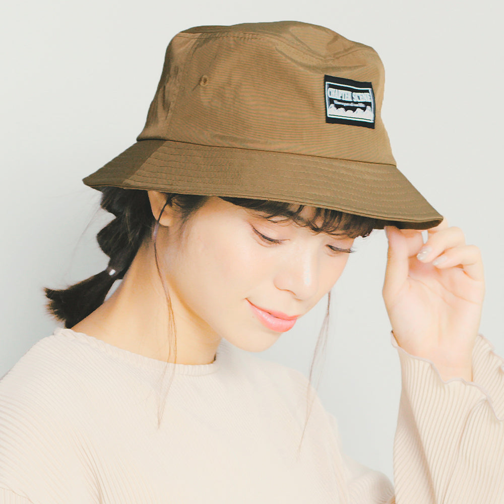 撥水加工を施した、機能性に優れたバケットハットです。ワッシャー加工が施してあるので、ベーシックな形でもおしゃれ。フロント部分のロゴ入りワッペンがカジュアルコーデのアクセントになります。ナイロン100%で汚れも付きにくいので、アウトドアにもピッタリです。