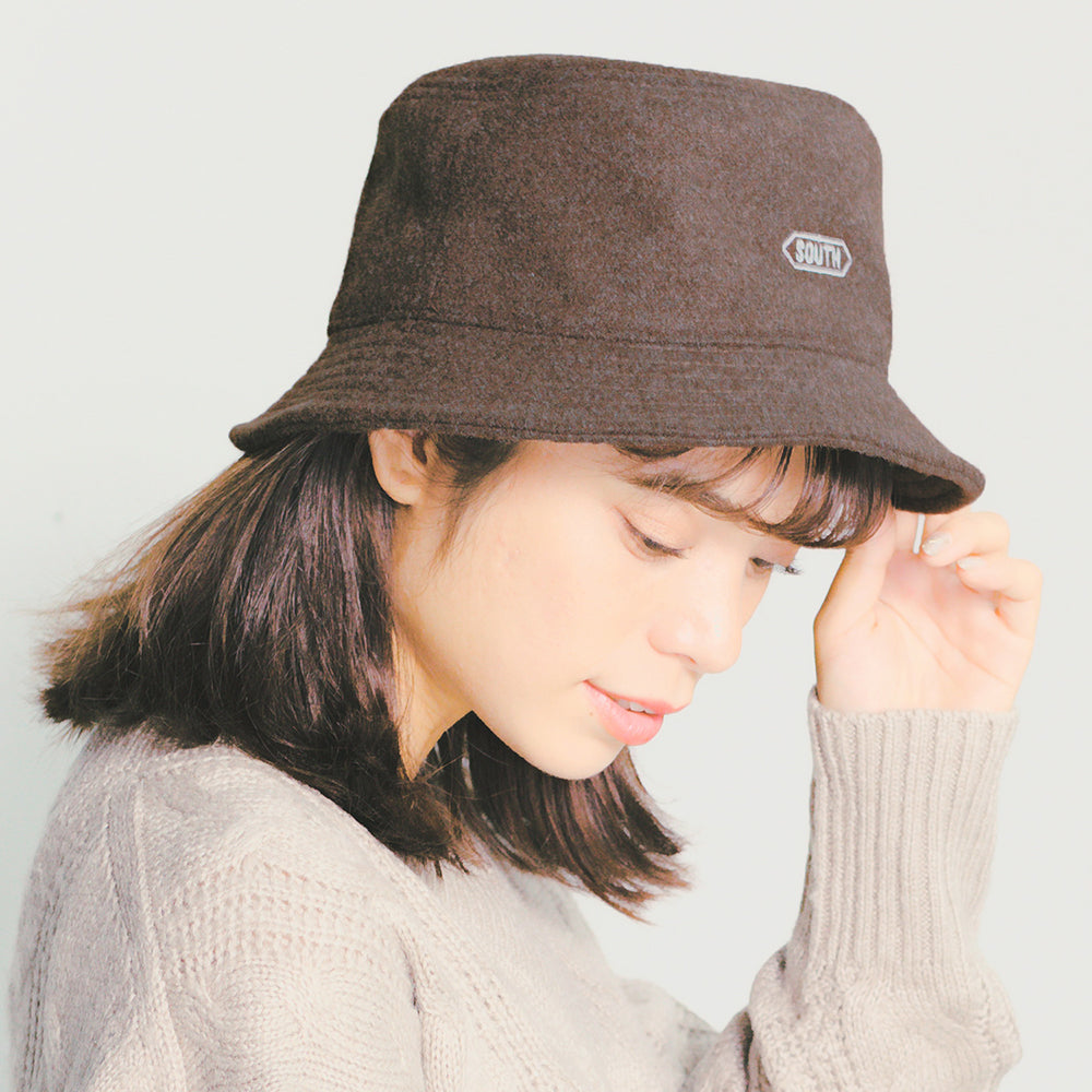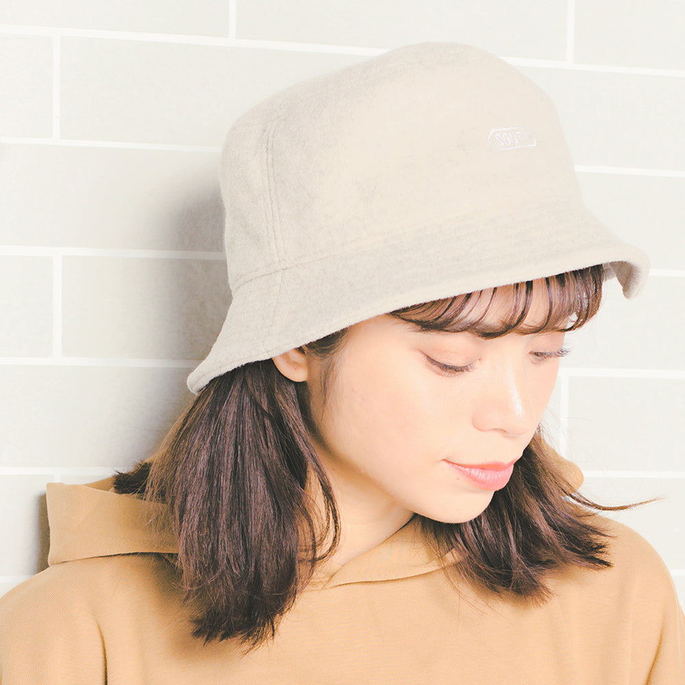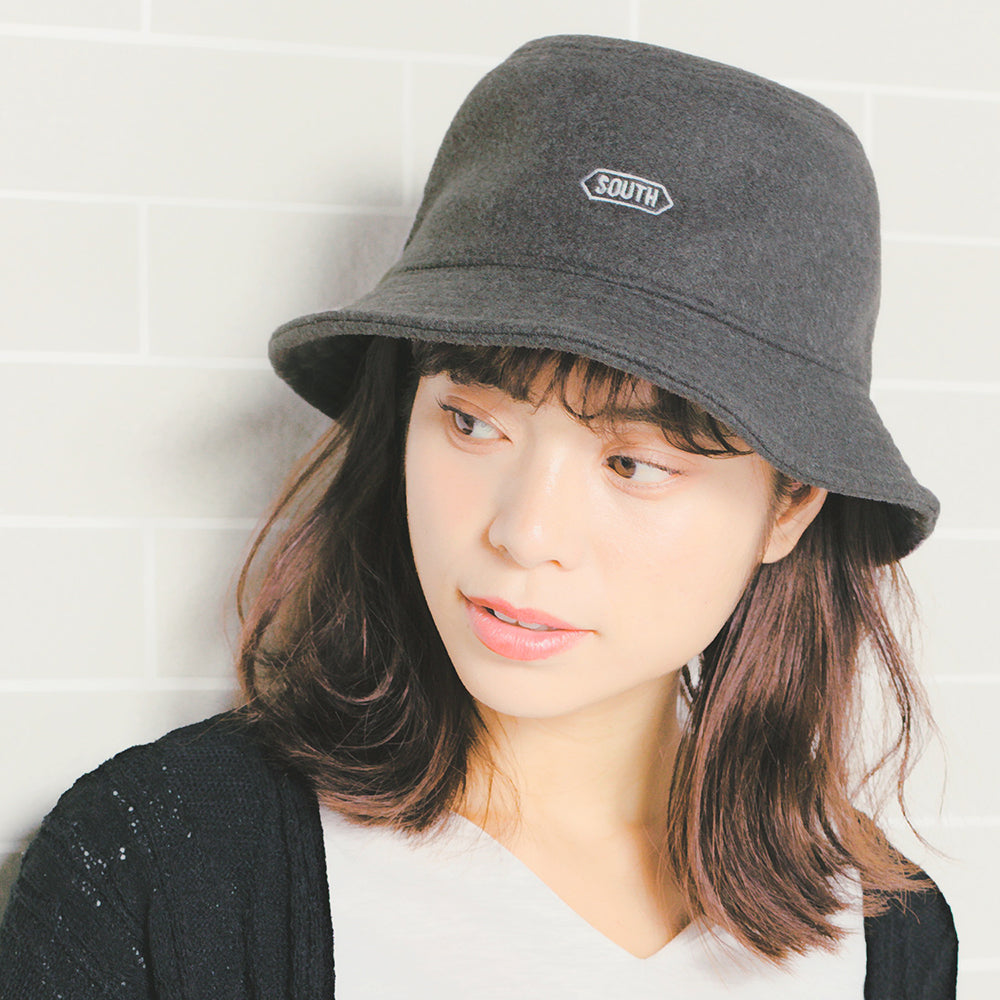 フェルト地のような温かみのある素材感が可愛いバケットハットです。フロントのSOUTH刺繍は帽子に馴染む色味とタッチでナチュラルな印象。とても柔らかいので折り畳んでの持ち運びにも便利!これからの季節に抑えておきたいオシャレアイテムです。