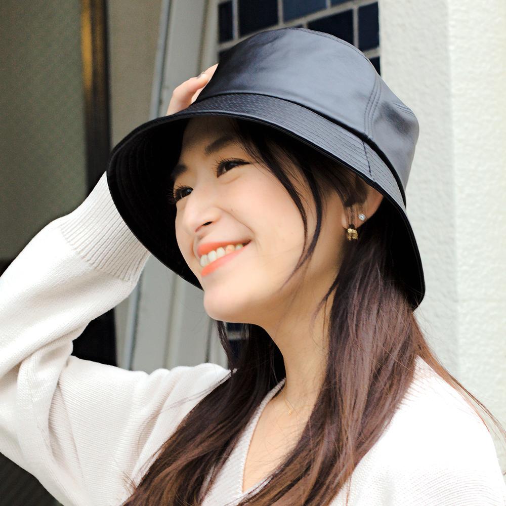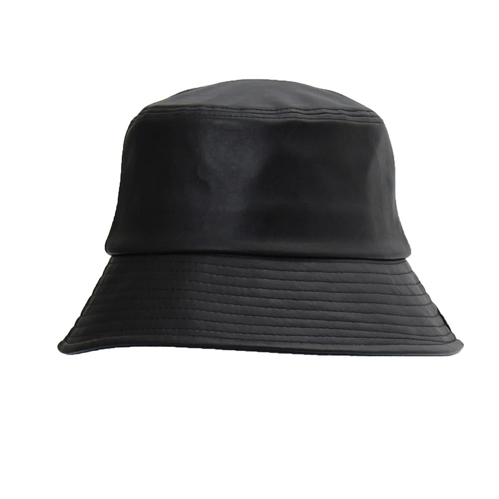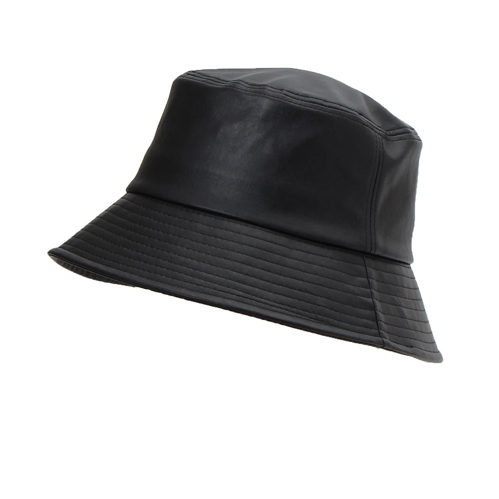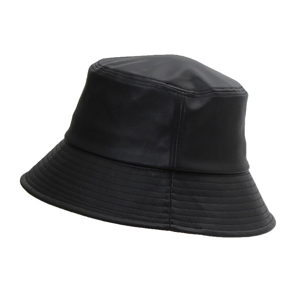 エコレザーを使用したトレンドのバケットハット。かっちりした見た目なのに、とても柔らかい素材感で被り心地は優しくとても軽やか。折り畳んでの持ち運びにも便利です。エコレザーの質感でカジュアルになり過ぎず、落ち着いたコーデにも合わせやすい!