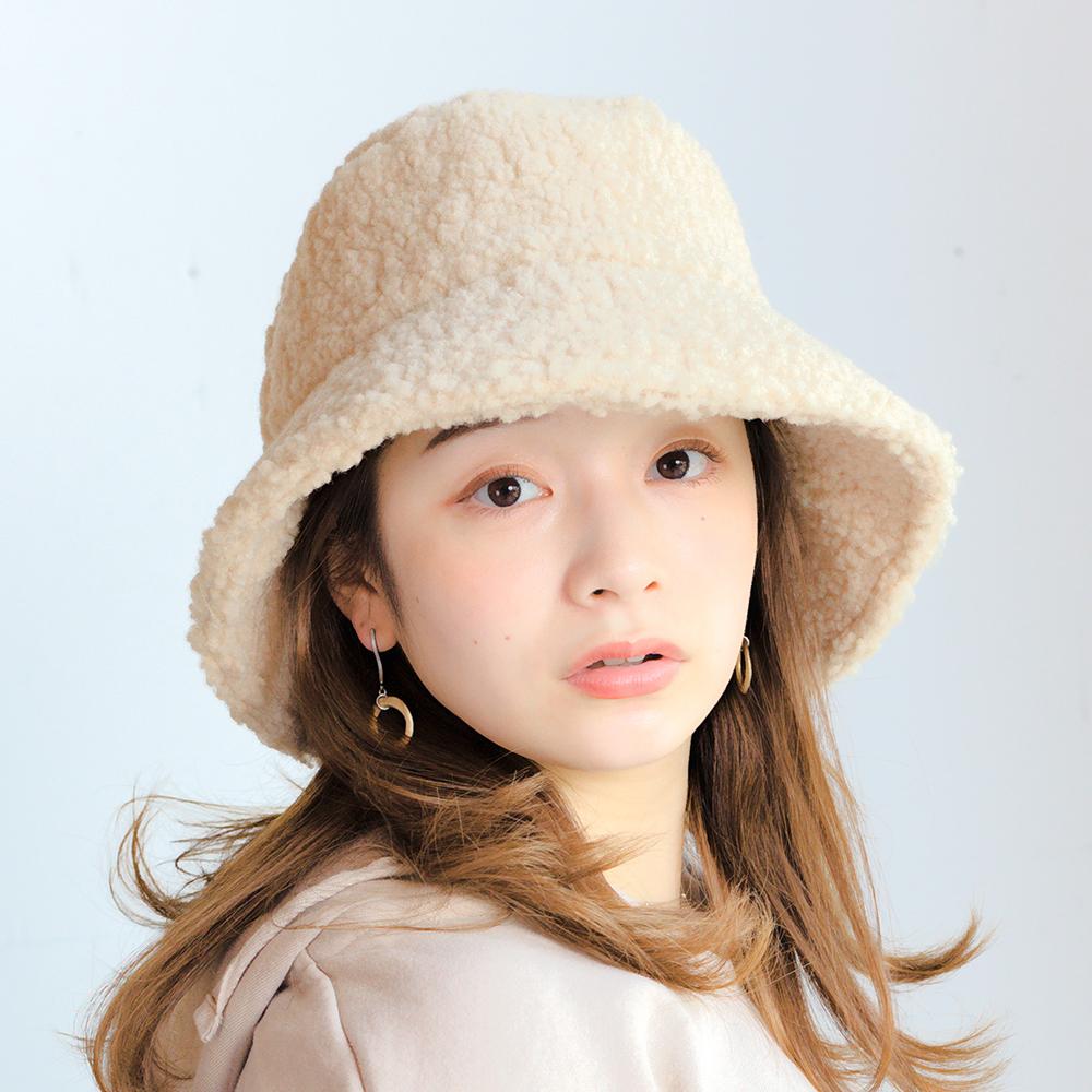 シープボアを使用した秋冬にぴったりなバケットハットです。定番のバケットハットを温かみのあるボアで作りました。モコモコの素材感がボリューミーでとっても可愛い!シンプルなのに存在感があるので、サッと被るだけでカジュアルコーデの主役になってくれます。裏地を着けてあるので、被り心地は優しくとても軽やかです。