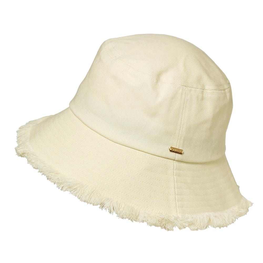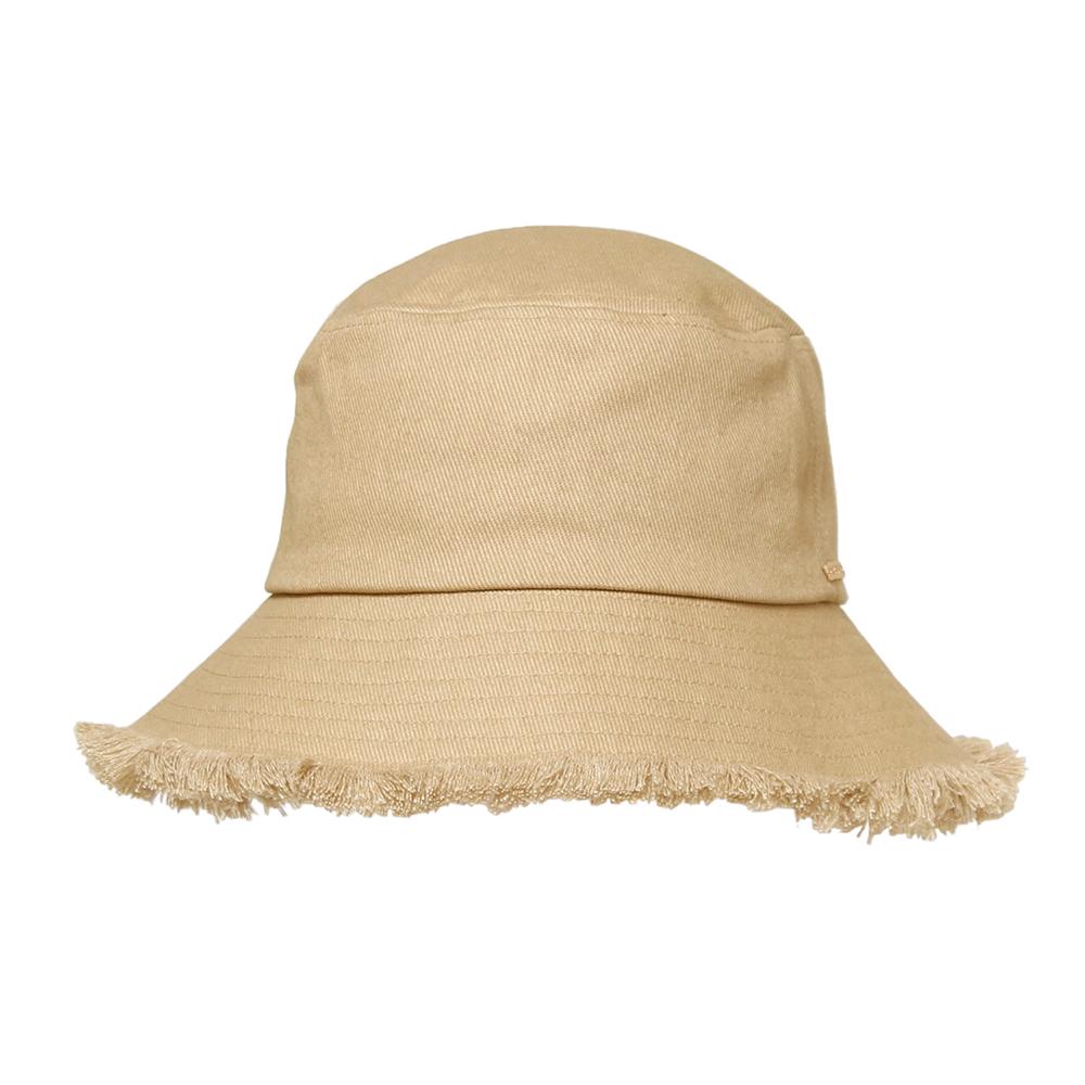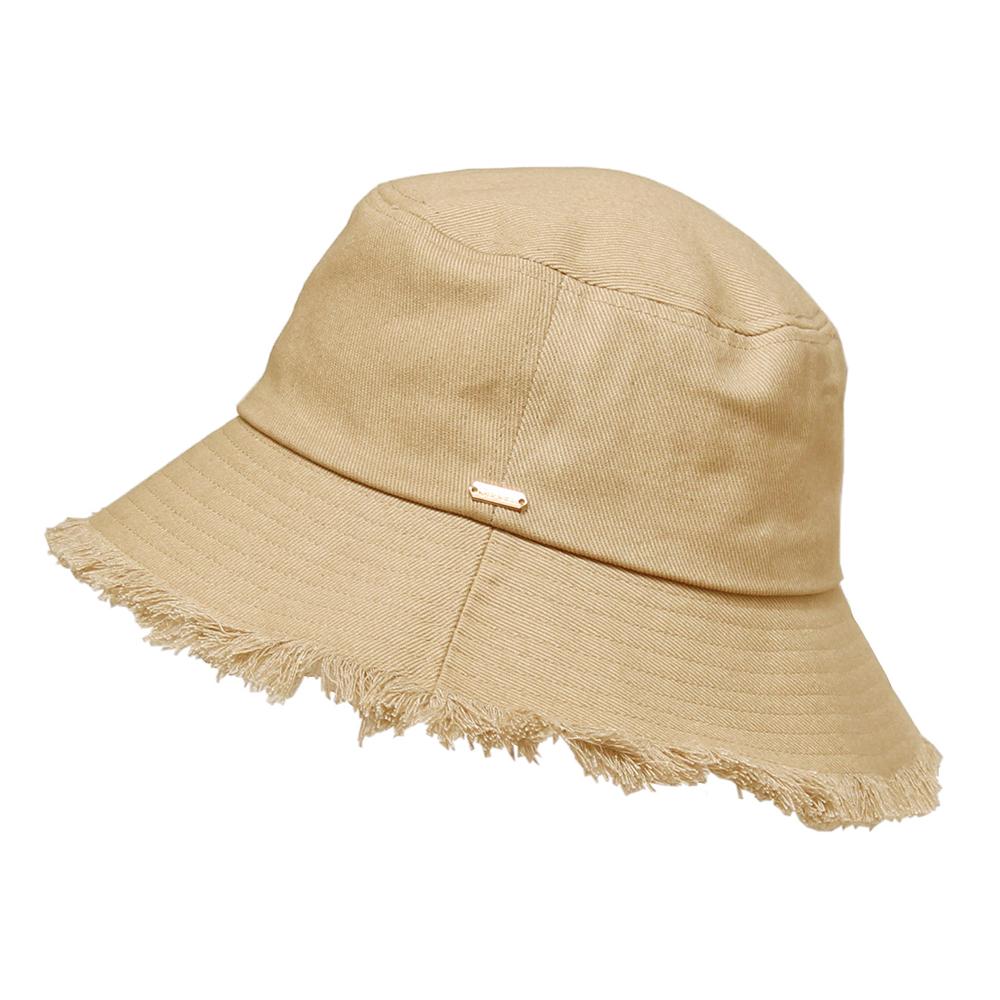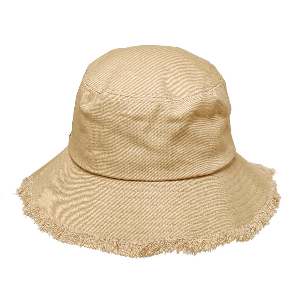 トレンドのフリンジバケットハット!くたっと柔らかいキャンバス素材は折りたたんでの持ち運びにも便利!軽い被り心地も魅力です!つば先のフリンジデザインとサイドのプレートタグがアクセントの、アウトドアやお散歩にも便利なバケットハットです。