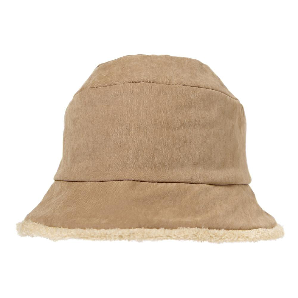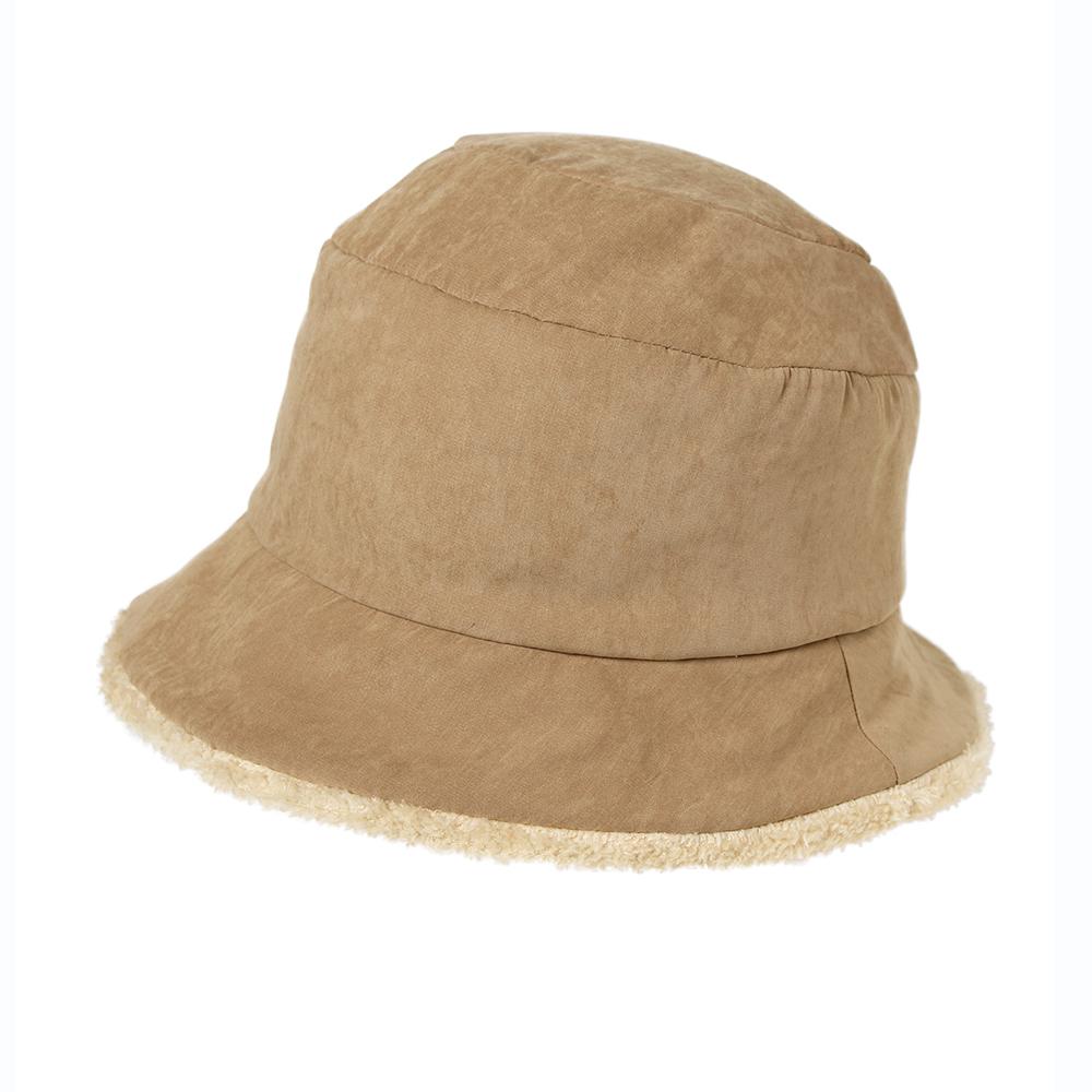 ボアとスエード調のリバーシブルで被れるダウンハットです。中綿入りなので、保温性にも優れ防寒にも最適!とても柔らかい素材感なので、小さく折りたたんでの持ち運びにも便利です。