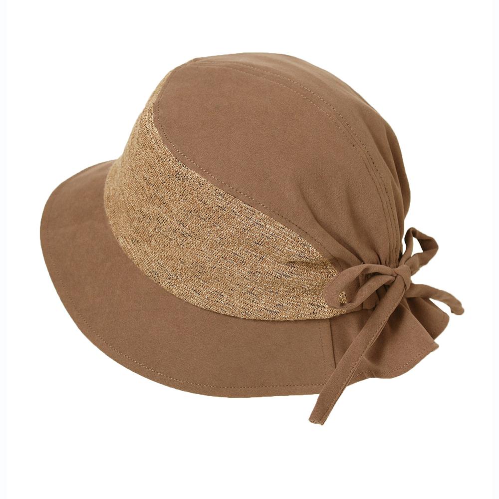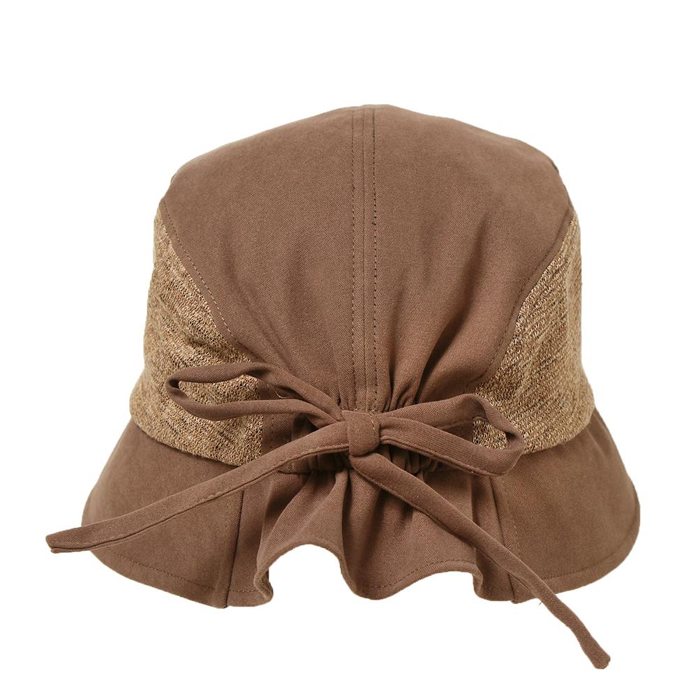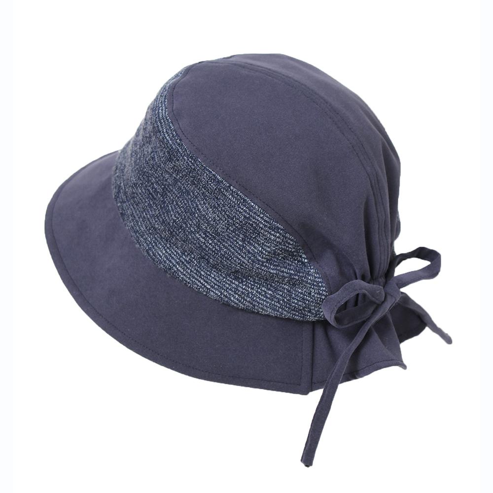 ニット素材との切り替えがオシャレなダウンハットです。ニット部分の裏面はメッシュ素材になっていて、通気性に優れた爽やかな被り心地。後ろ部分は一部ゴム仕様になっていて締め付け感がなく、ギャザーとリボンが可愛いアクセントになっています。