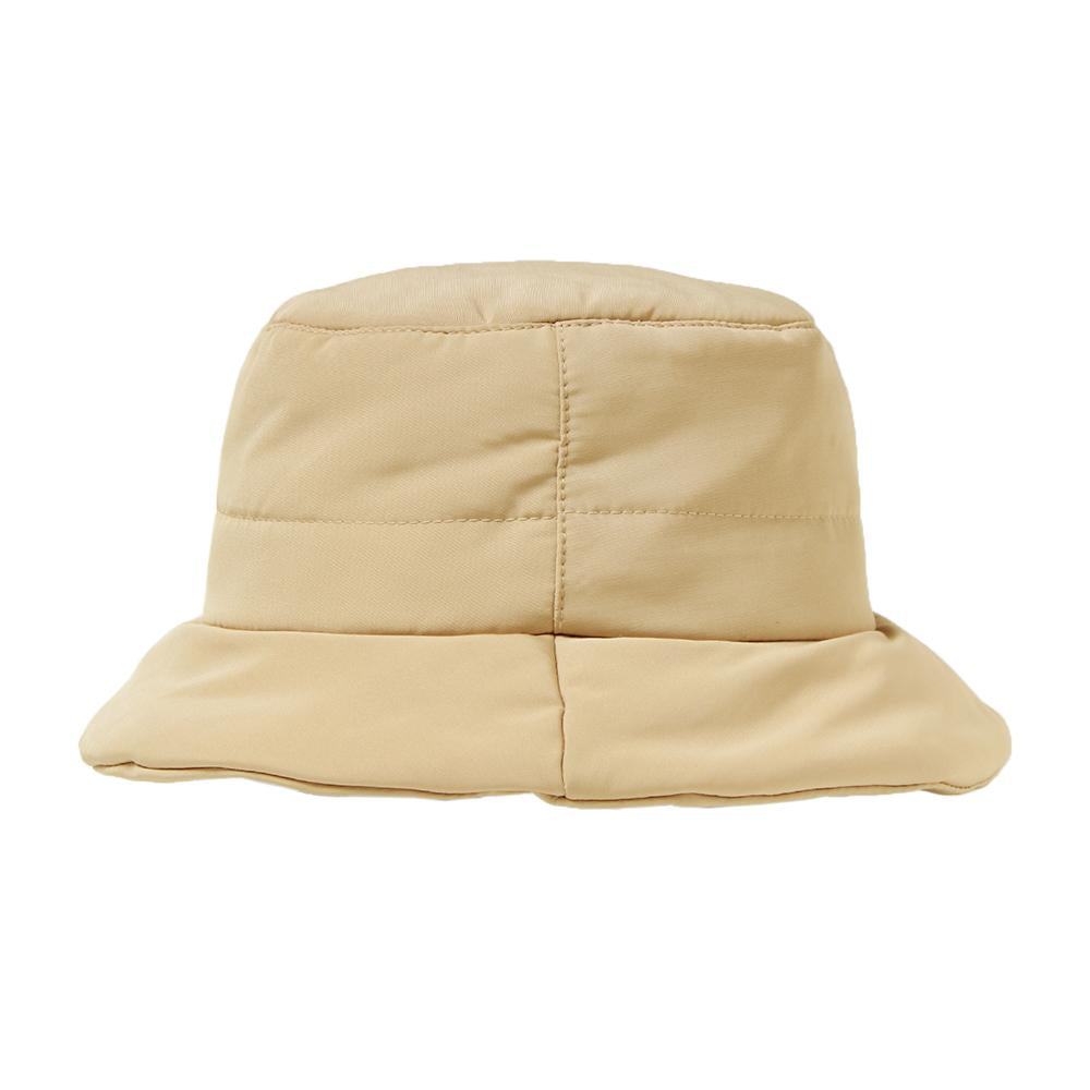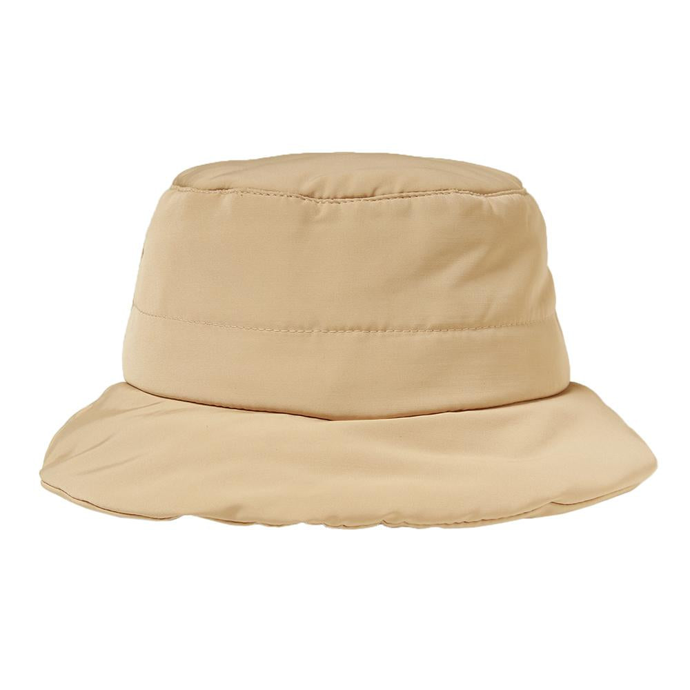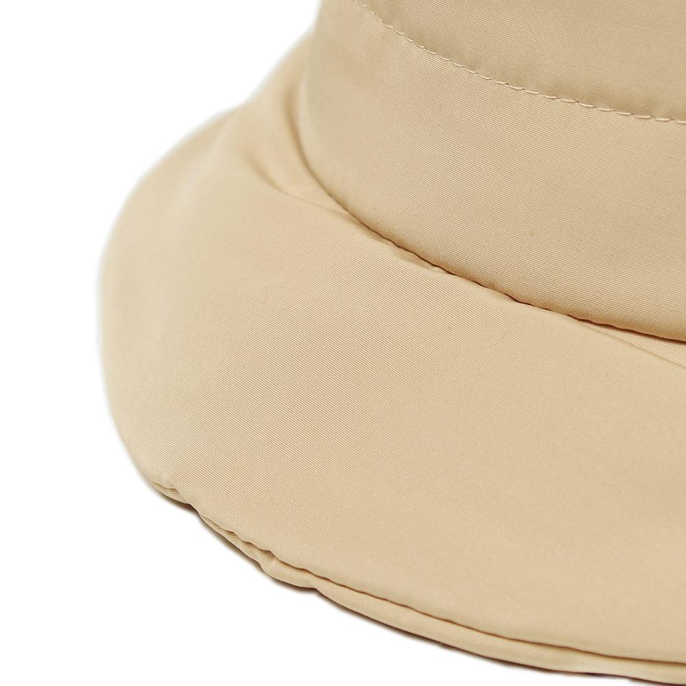 中綿素材の保温性があるハットです。柔らかくて軽いので頭への負担が少なく、折りたたんで収納もできます。内側にあるすべりの裏側には、サイズを調節して頂けるテープが付いていますのでご自分のサイズ感で被って頂けます。