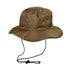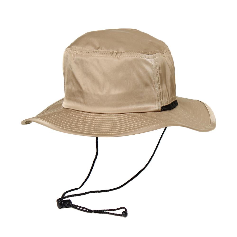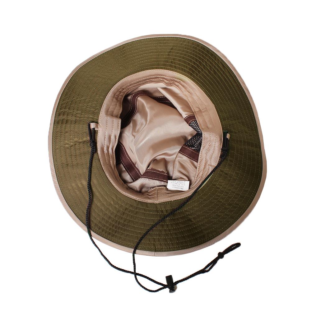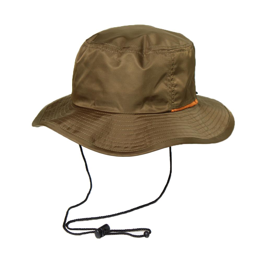 アウトドアの季節におすすめのアドベンチャーハットです。撥水素材なので、汚れや水に強くお手入れも簡単!再度には通気窓がついていますので、撥水素材でも通気性に優れ被り心地も爽やかです。後ろ部分にはサイズ調節して頂ける絞りが付いていますのでご自分のサイズ感で被って頂けます。※頭囲58.5cmの型で生産しておりますが、工程途中の縮みにより実寸サイズは57.5cmとなります。ご確認の上、ご購入をお願い致します。