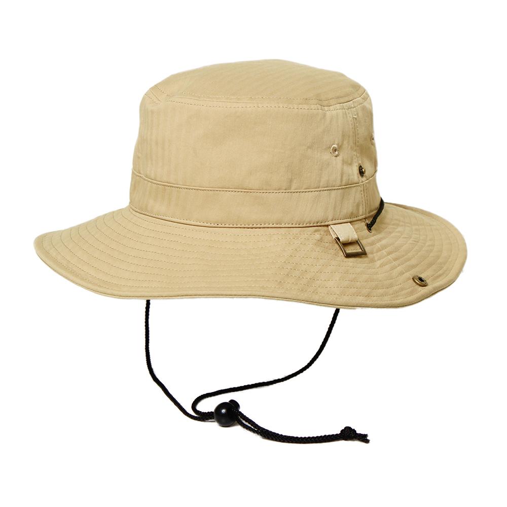 アウトドアの季節におすすめのアドベンチャーハットです。コットン素材で柔らかな被り心地。手洗いも可能なので、いつでも清潔に保って頂けます。内側にあるすべりの裏側には、サイズを調節して頂ける紐が付いていますのでご自分のサイズ感で被って頂けます。
