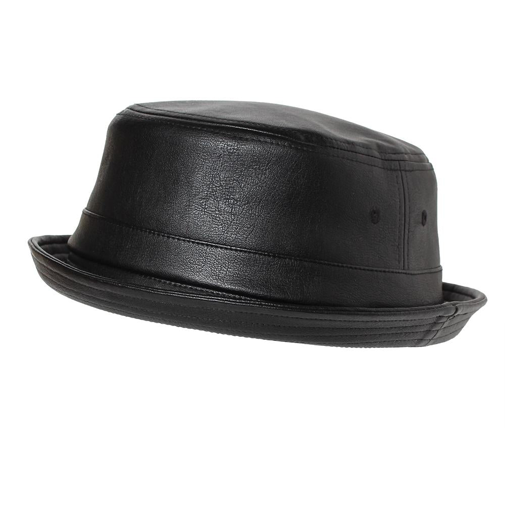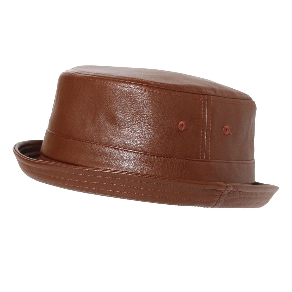 季節や性別関係なく楽しめる少しレトロ感のあるシルエットのポークパイハットです。カジュアルファッションに合わせやすく、エコレザー素材が大人のカジュアルスタイルにぴったりです。