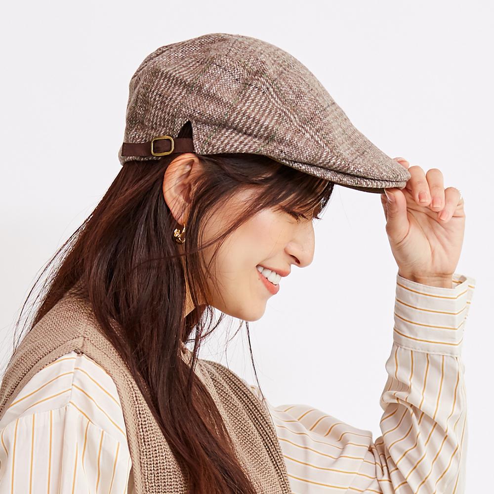 柔らかいグレンチェックのレトロな雰囲気があるハンチング帽です。ウール素材の入ったの柔らかい被り心地。グレンチェック柄はさり気なくコーデのワンポイントに。サイドのベルトがアクセントでお洒落。