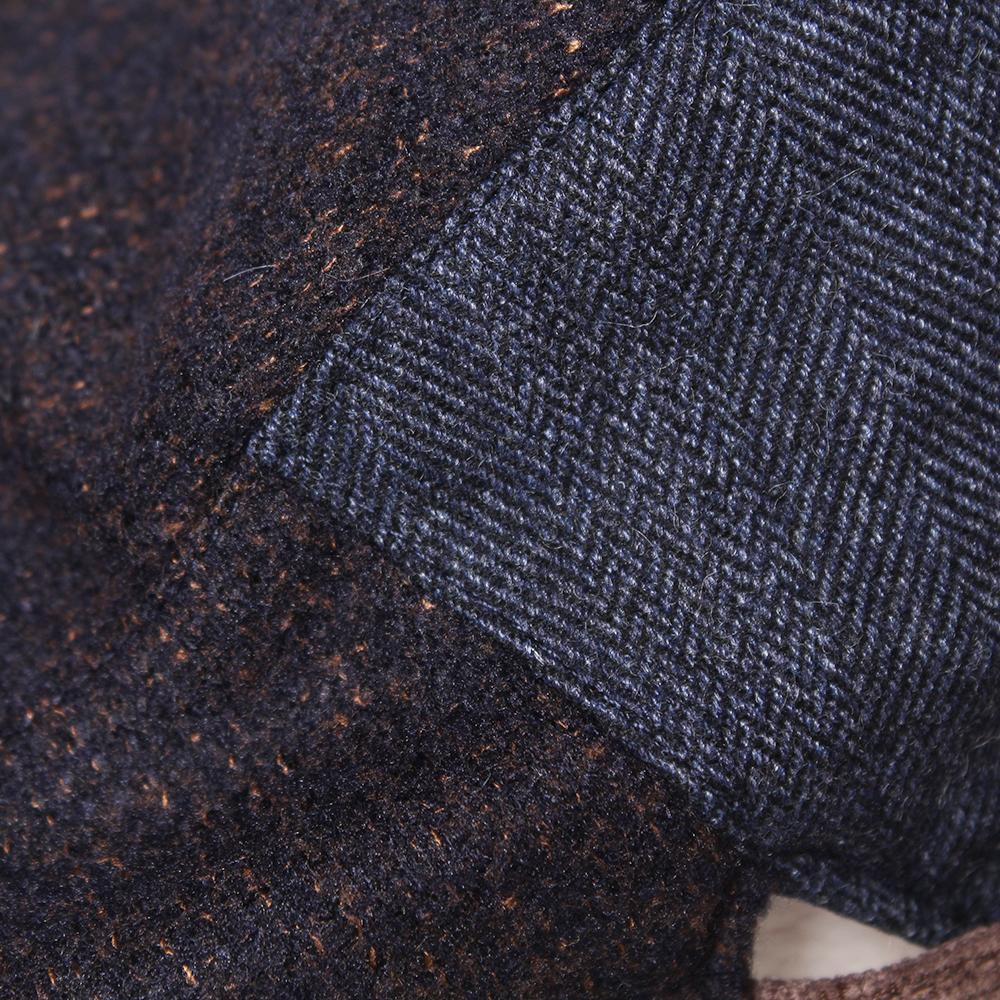 サイドの切替えがおしゃれなハンチングです。ヘリンボーンの柄行がさり気ないオシャレさを感じさせてくれ、素材は柔らかくの軽やかな被り心地。サイドのベルトで若干のサイズ調節が可能です。