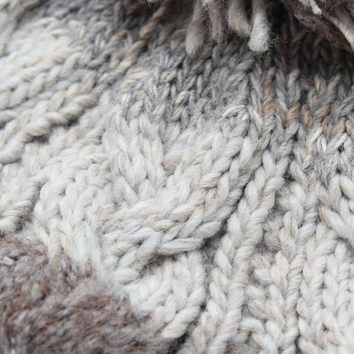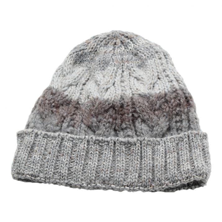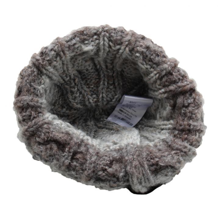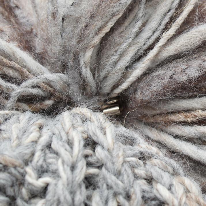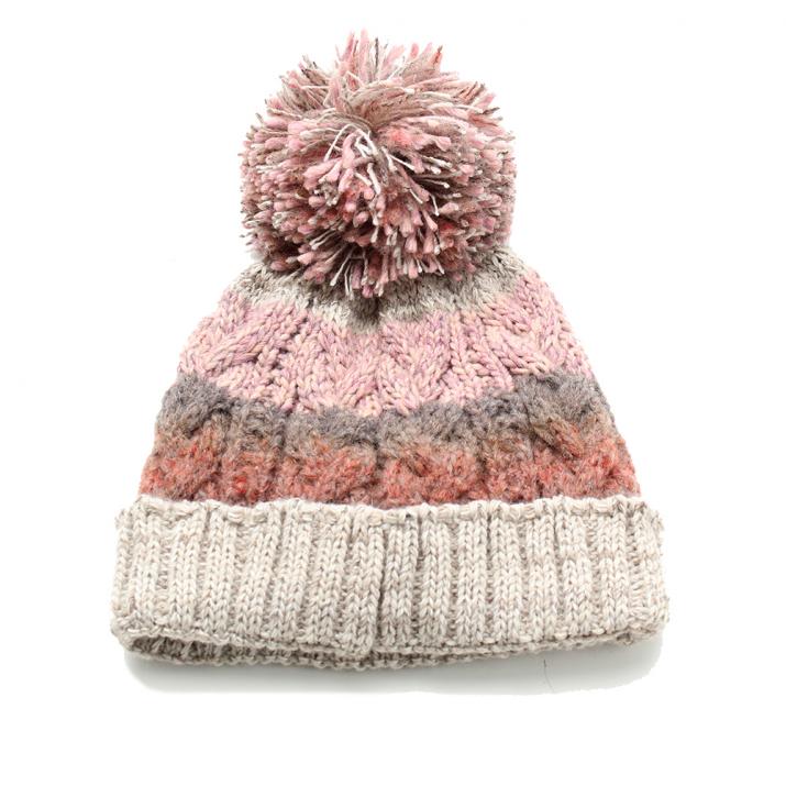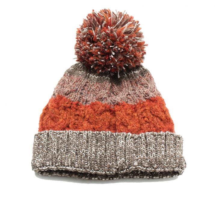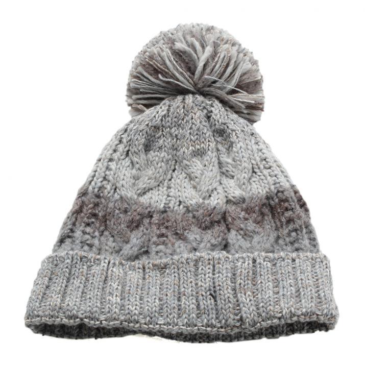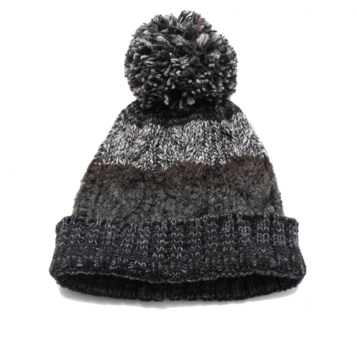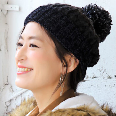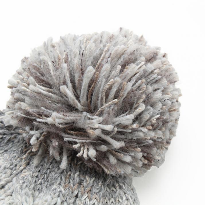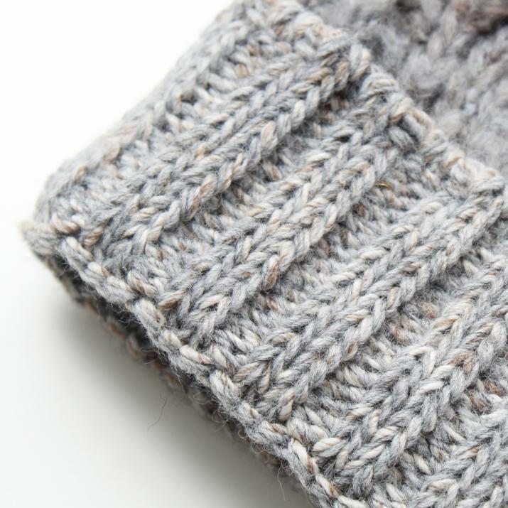 ふわふわニットのボリューム感にトップのボンボンが存在感抜群の秋冬ニット帽です。素材にはウールやアクリルを使い、冬へ向けての保温性も確保。色や太さの異なる毛糸を編みこんでデザインされた模様は柄物よりもさり気なく、無地のミックスカラーニットよりもお洒落な雰囲気です。ボンボンは取り外しも可能。シンプルにもキュートにも、使って頂けるニットです。