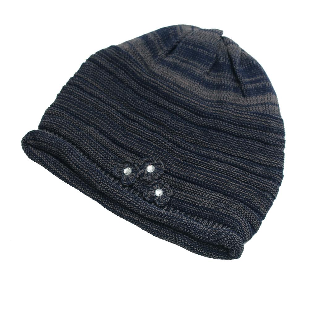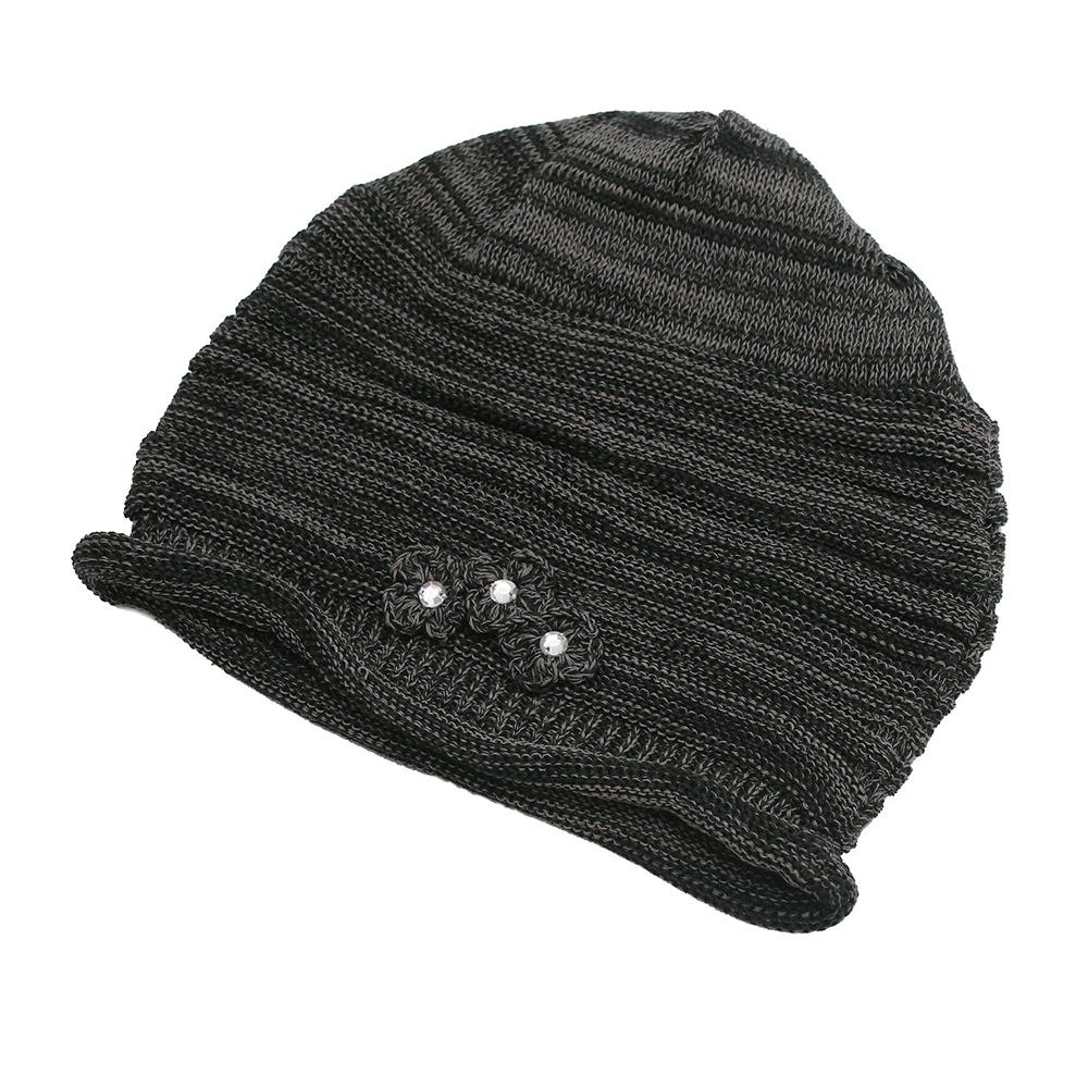 フラワーモチーフの飾りがついた、おしゃれなニット帽です。3つのお花にはそれぞれビジューがついているので、ほっこりしたニット帽のさりげないポイントになってくれます。タックが取ってあるので、さっと被るだけでシルエットがスッキリ!温度調整機能を備えたアウトラスト素材を使用しているので、いつも暑過ぎず、寒すぎない快適な被りこちです。