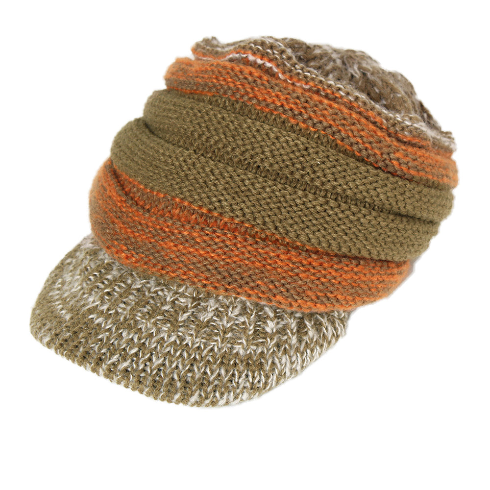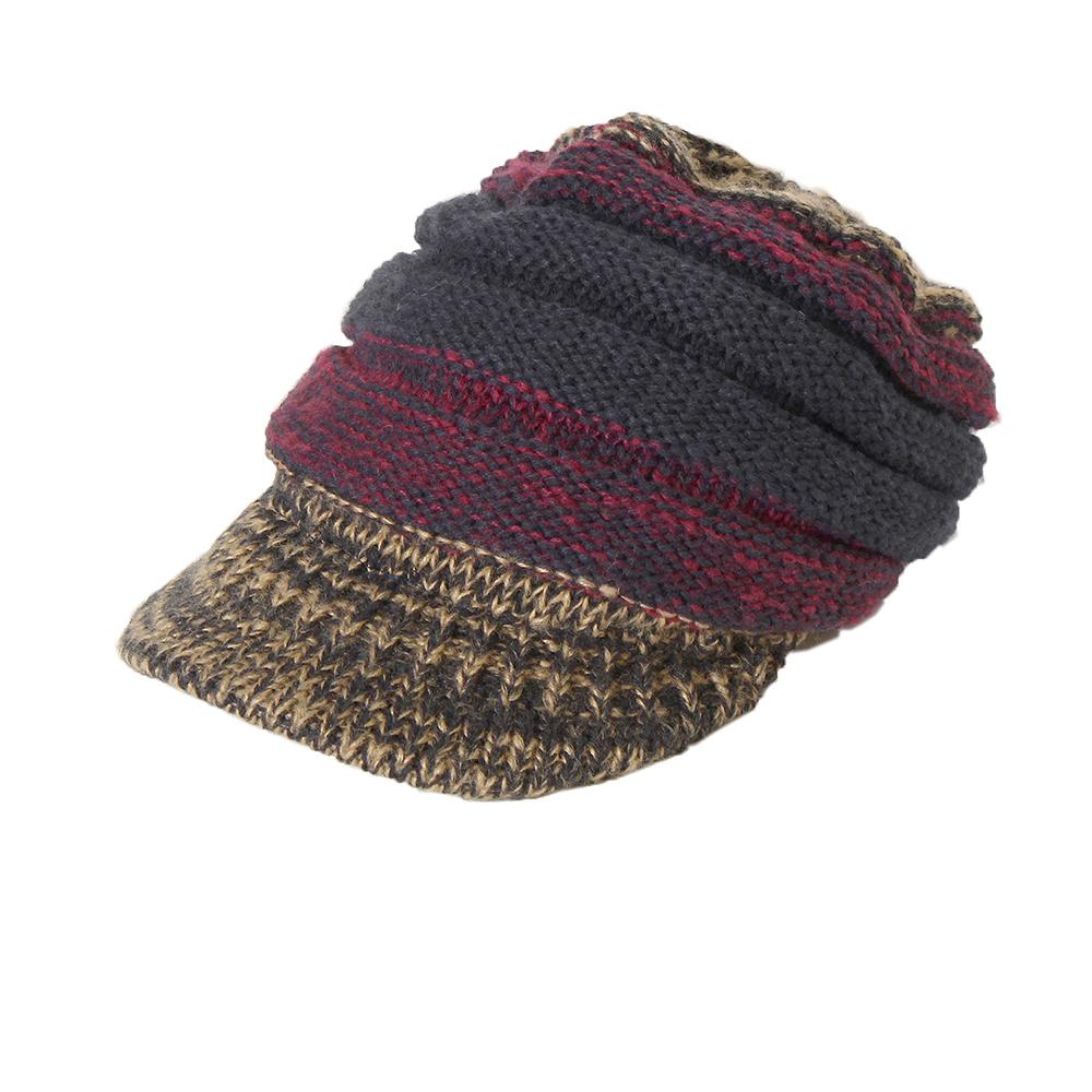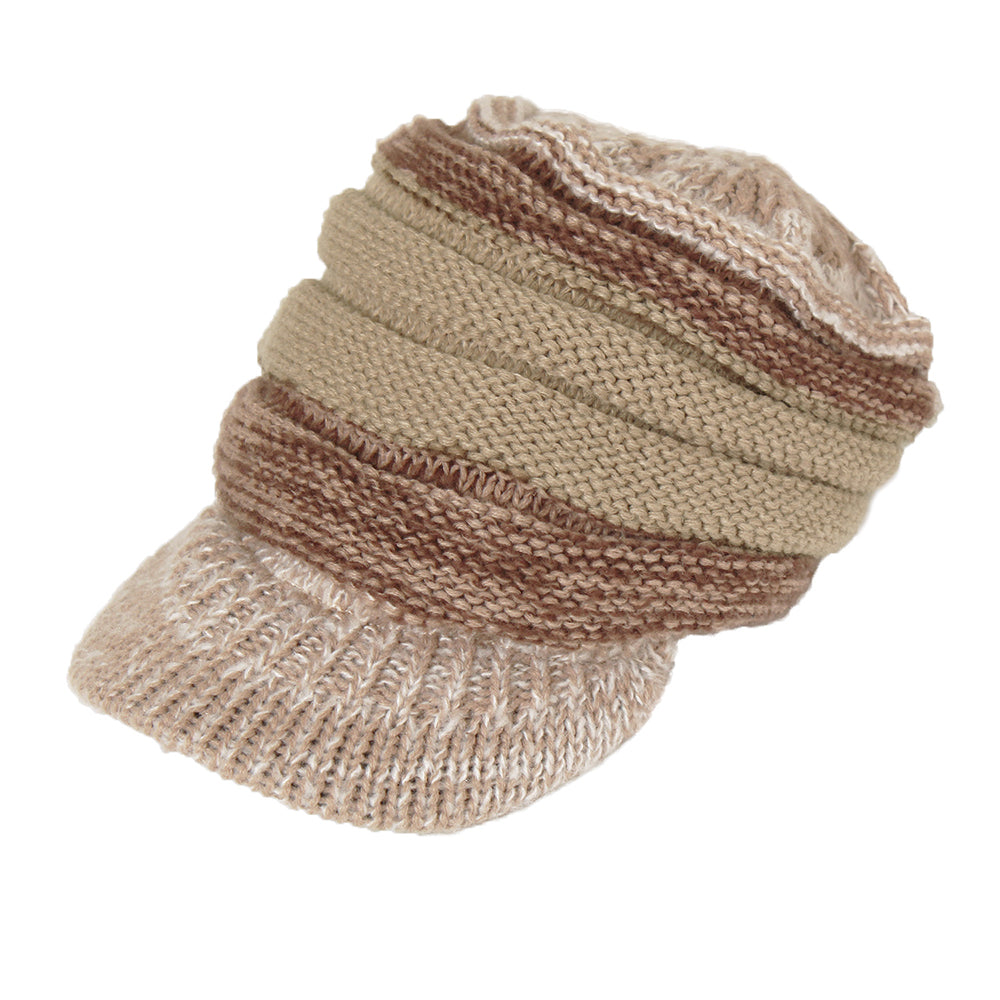 クシュクシュのトップにつばがついたおしゃれなニット帽です。なじみやすいカラー同士をグラデーションに組み合わせているので、存在感抜群。コーディネートのポイントになってくれます。アクリル100%のニット素材で、真冬でも暖かさ抜群。ゴルフやスノボーなど、冬の屋外での活動にもオススメです。他のニットキャスケットと比べて、つばも少し長めなので、小顔効果も。