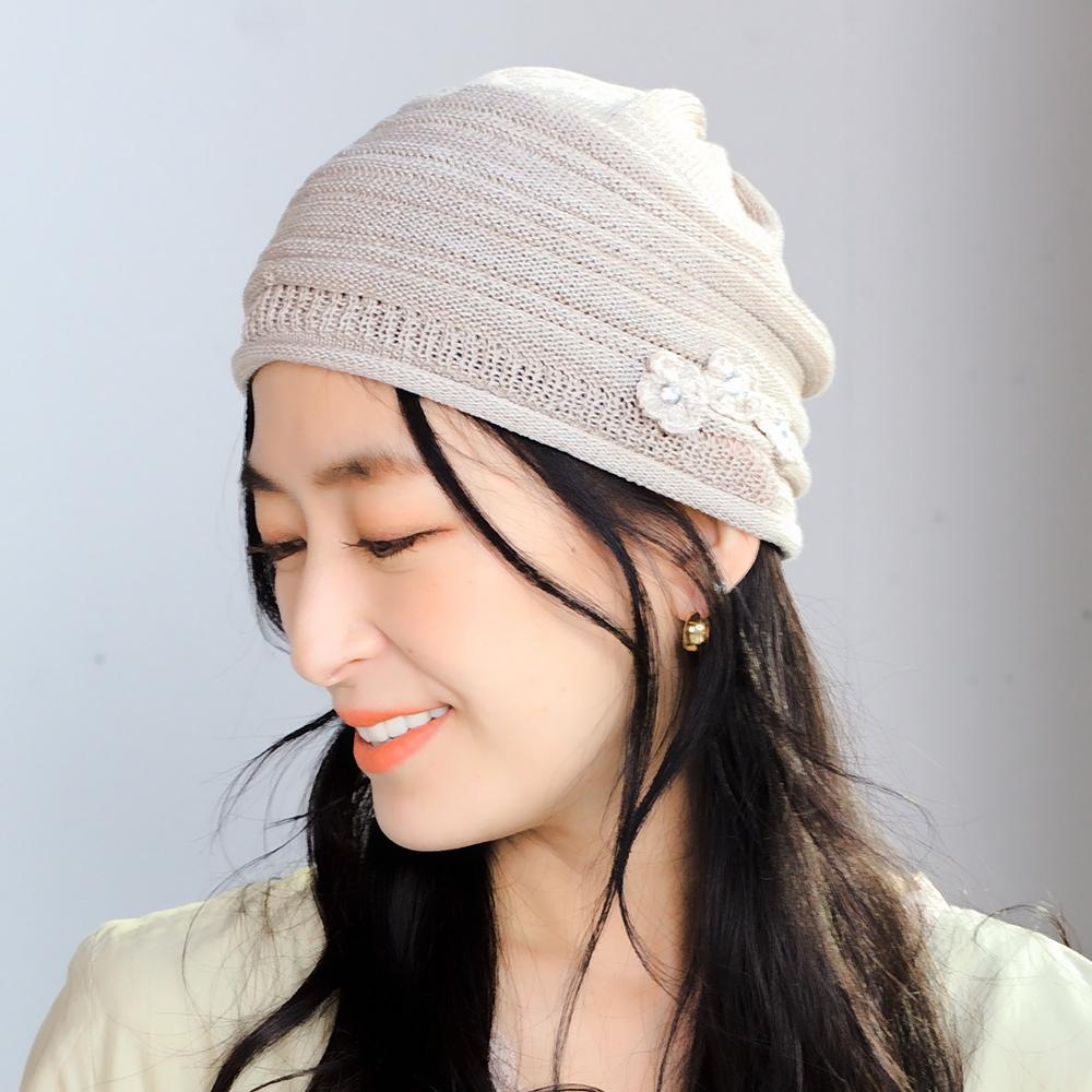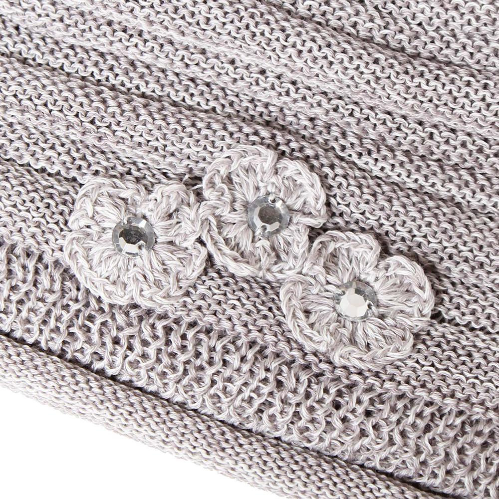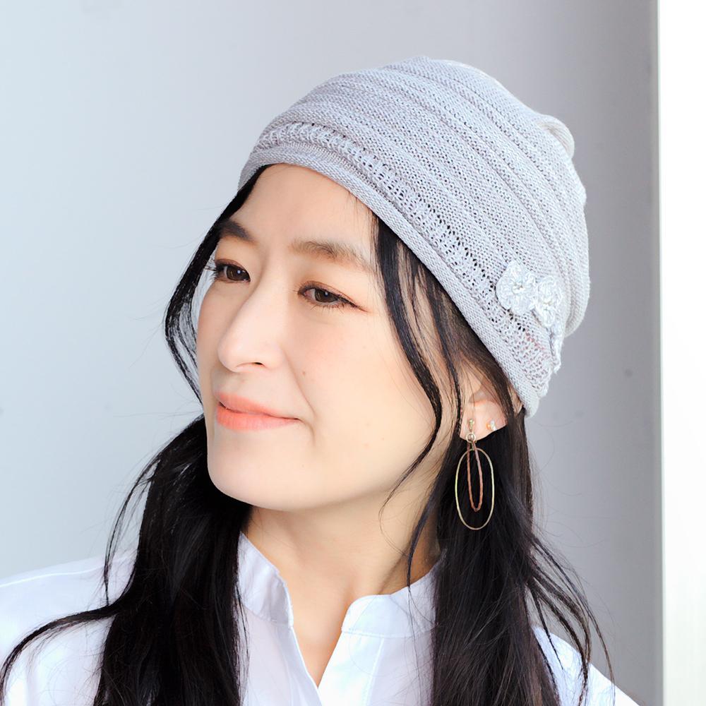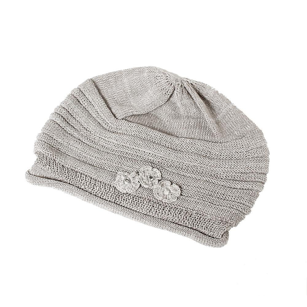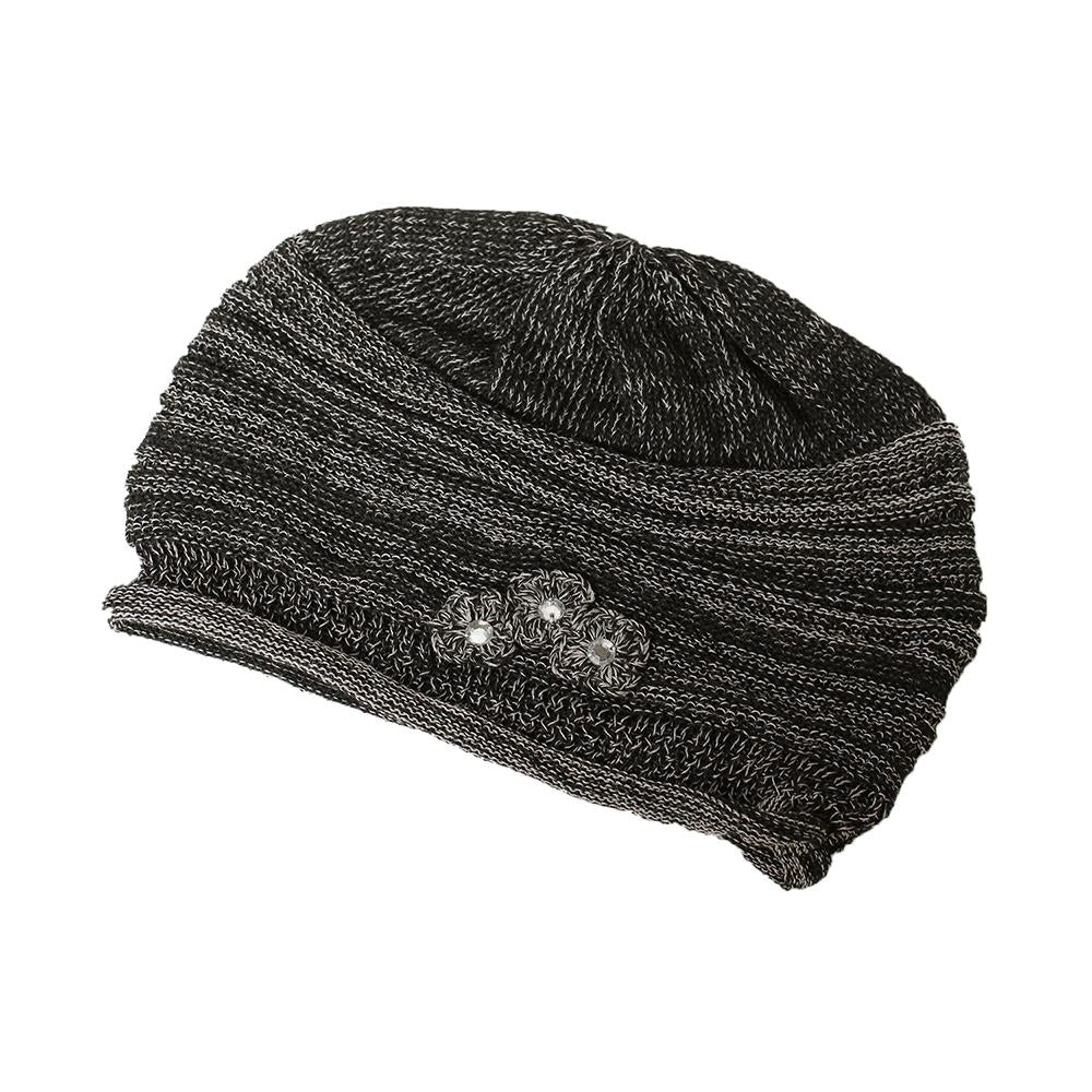 フラワーモチーフの飾りがついた、おしゃれなニット帽。3つのお花の中央にはそれぞれビジューが付いており、ほっこりしたニット帽のさりげないポイントです。程よい伸び感ですので、さっと被るだけでシルエットがスッキリ!温度調整機能を備えたアウトラスト素材を使用しているので、いつも暑過ぎず寒すぎない、快適な被り心地です。