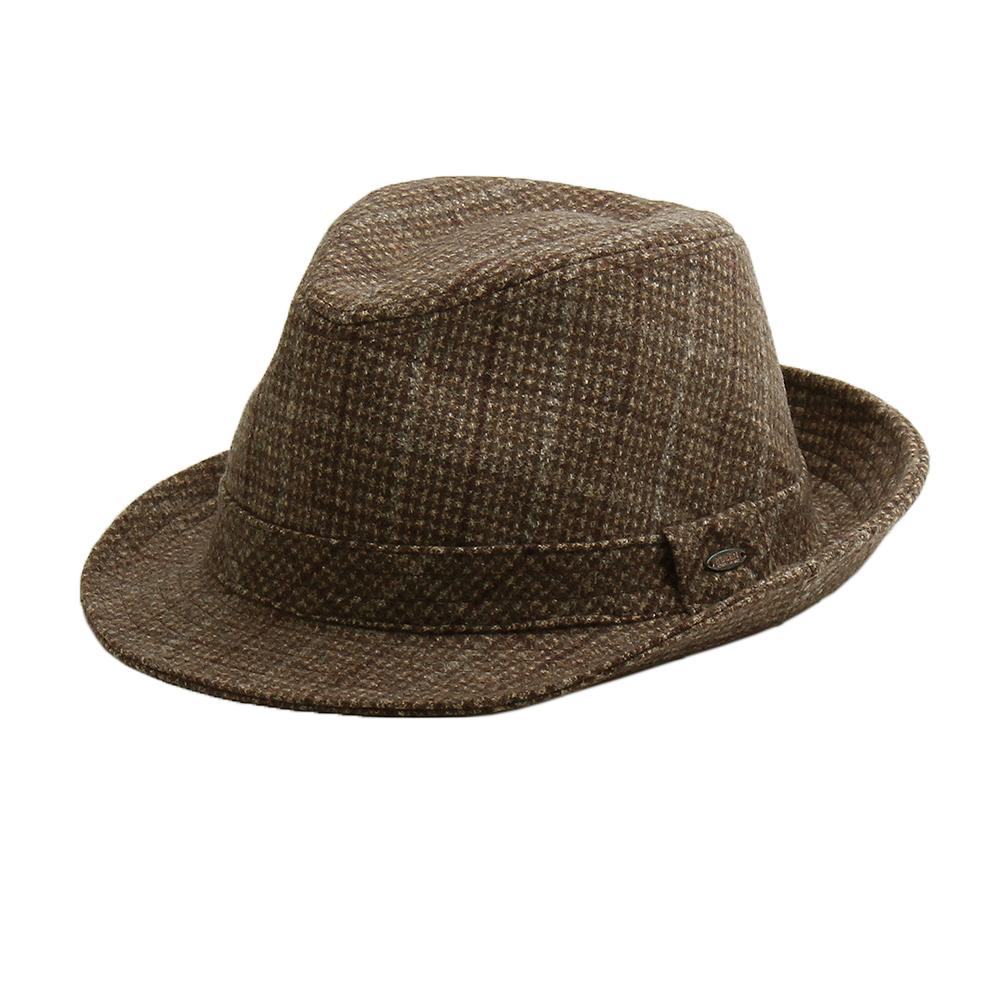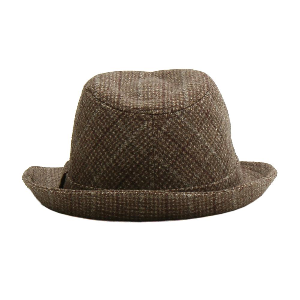 チェックのデザインがおしゃれな大人の中折ハットです。シックでなじみやすい色を合わせているので、落ち着いた印象。コーディネートしやすく、さらりと合わせるだけで大人スタイルが完成します。温かみのあるウール素材を用いており、秋冬にぴったりな中折れハットです。
