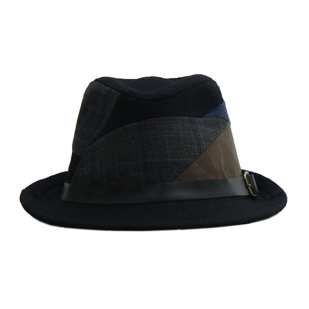 異素材を掛け合わせたデザインがおしゃれな中折ハットです。スエードやコーデュロイ素材を合わせたパッチワークデザイン。