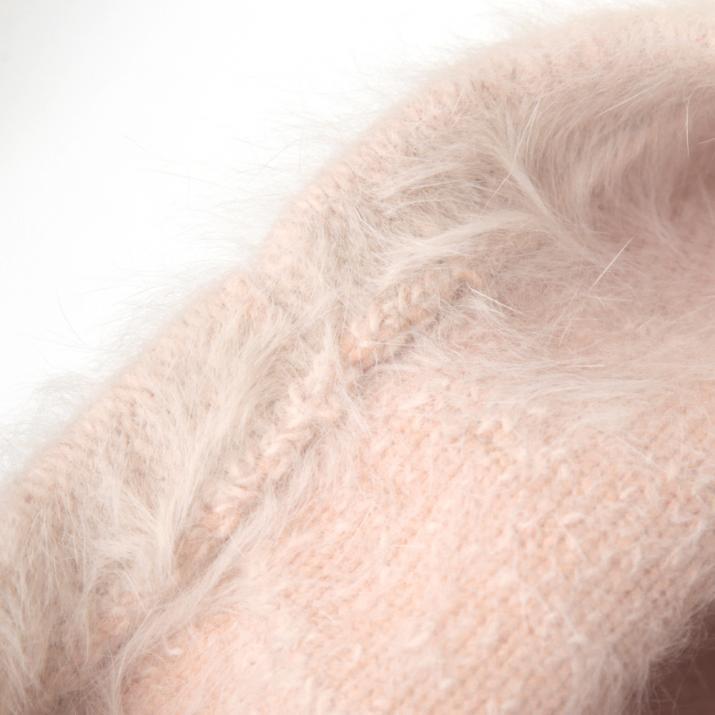 光沢があり、細く柔らかい毛並みを持つアンゴラファーをふんだんに使って、上品で可愛らしい雰囲気のニットベレー帽です。細やかなピッチで伸縮性の高いニットの本体は、薄手でもしっかり丈夫な生地感で、滑らかな手触りが嬉しいアイテム。デザイン性はもちろん、保温性や着心地、肌触りにも優れたアイテムです。普段のコーデにプラスすれば、それだけで華やいだ印象に。