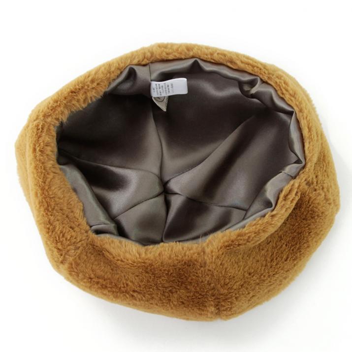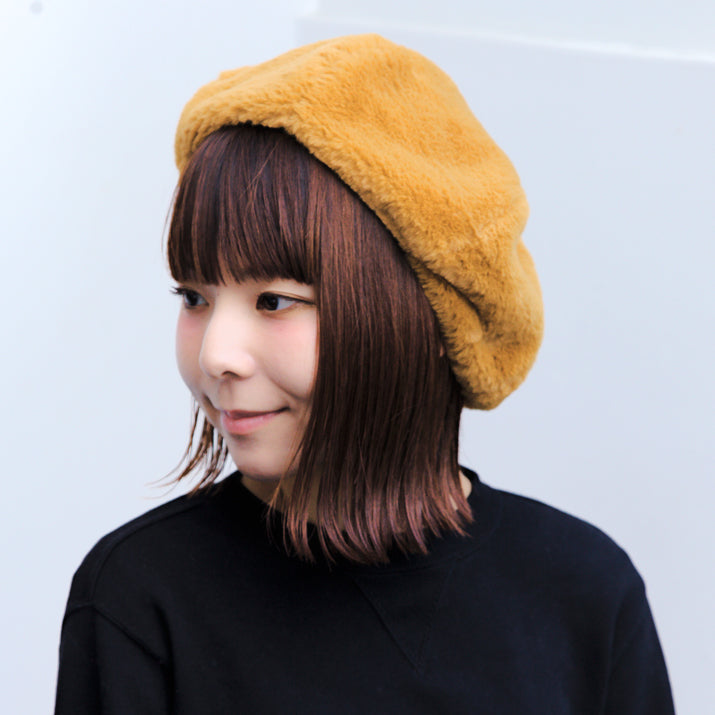 ふわふわと柔らかいフェイクファーが全体を覆ったインパクトのあるベレー帽です。ワンカラーのシンプルデザインで合わせやすく、ボリュームのあるファー素材が普段のコーデを格上げしてくれます。裏地にはツルツルしたサテン地を使用し、柔らかな被り心地です。